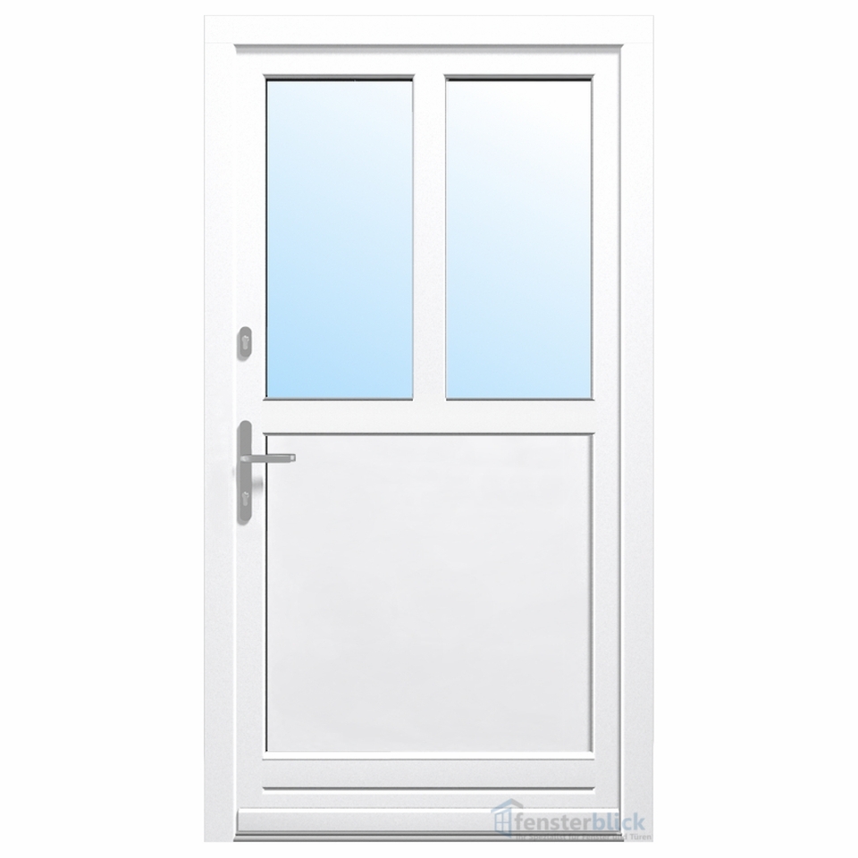 Die Nebeneingangstür Neuruppin überzeugt mit seiner freundlichen und klassischen Optik und fügt sich nahtlos in jedes Fassadendesign ein. Die Türfüllung besteht zur Hälfte aus einer Verglasung und zur Hälfte aus ener Paneelfüllung. Die Verglasungfläche wird wiederum durch den Einsatz eine Kämpfersprosse halbiert. Diese symmetrische Aufteilung des Türmodells wirkt harmonisch auf den Betrachter und führt durch den Einsatz lebendiger Farben, überzeugender Holzdekore und schönen Ornamentverglasungen zu einem beeindruckenden Gesamtbild. Neben der Ästhetik können Sie die Nebeneingangstür Neuruppin auch in puncto Sicherheit nach Ihren Bedürfnissen konfigurieren. Im Türen-Konfigurator finden Sie eine Auswahl an Verbundsicherheitsgläsern, Mehrfachverriegelungen, PZ-Schlössern und Hinterbandsicherungen.