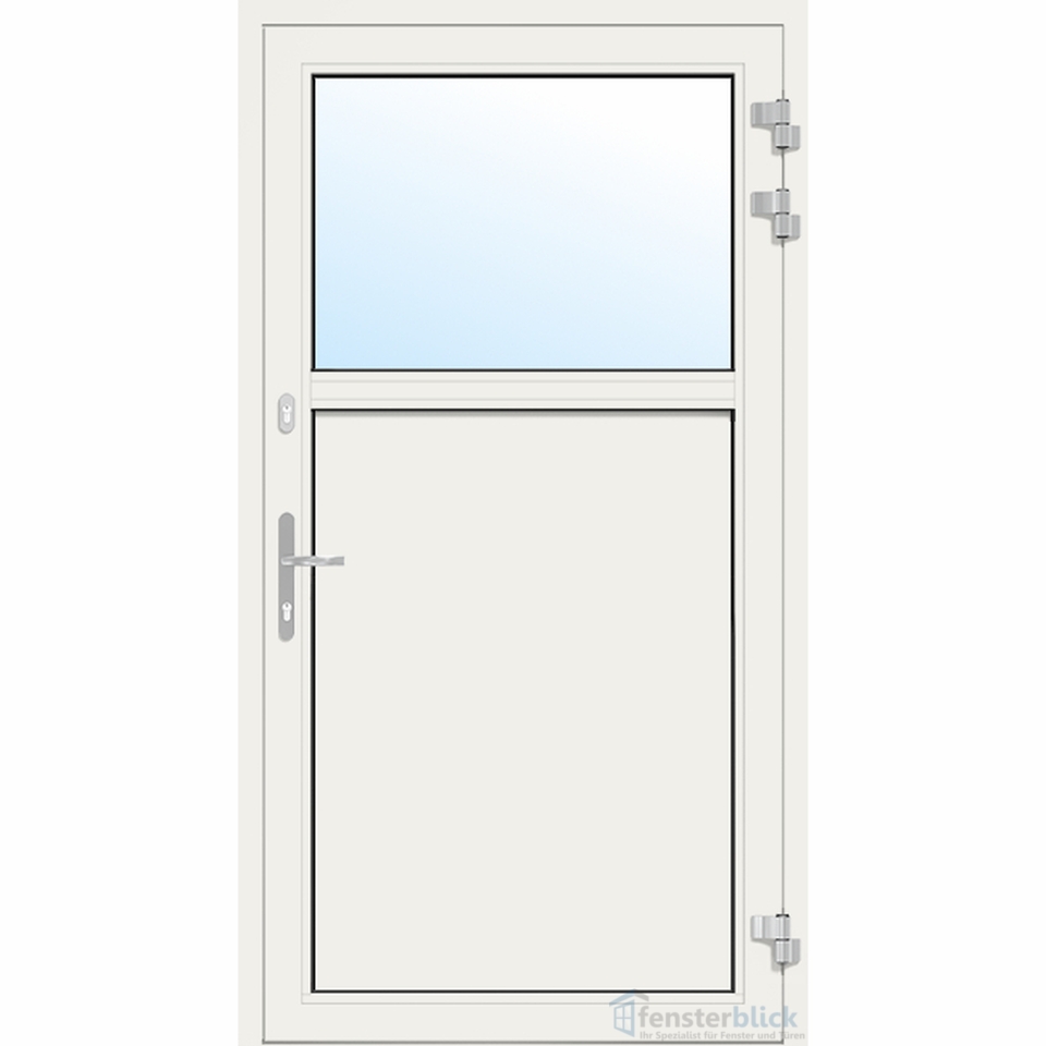 Die Nebeneingangstür Schwedt gehört zu den beliebtesten Eingangstürmodellen. Das zeitlose Design aus 2/3 Paneel und 1/3 Glas wirkt schlicht und doch modern. Gerade die Glasfläche im oberen Bereich sorgt neben der schönen Optik für den nötigen Lichteinfall ins Rauminnere. Für einen Sichtschutz kann die Verglasung mit Ornamentgläsern wie Milchglas, Chinchilla oder Silvit konfiguriert werden. Auch die Kombination mit Wärmeschutz- oder Sicherheitsgläsern ist möglich. Gestalten Sie die Nebeneingangstür Schwedt nach Ihren Wünschen und Anforderungen. Wählen Sie je nach Profilmaterial aus einem breiten Spektrum an Dekoren, Lasuren und RAL-Farben und statten Sie Ihre Wunschtür mit dem gewissen Extra aus. Das starke Zusammenspiel aller Komponenten verleiht der Nebeneingangstür eine hohe Lebensdauer, Stabilität, Sicherheit und Wärmedämmung. Im Türenkonfigurator erhalten Sie schrittweise eine Übersicht über alle Varianten und Möglichkeiten und können dank der automatischen Preisberechnung stets die Kosten im Blick behalten.
