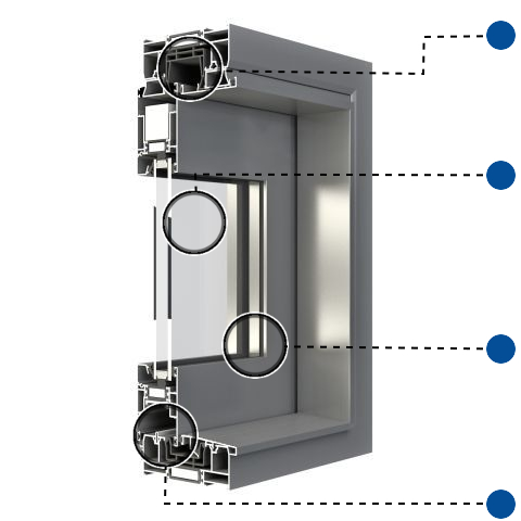 Maximale Verglasungsdicke bis 42 mm. Optional Einsatz von Spezialgläsern, wie VSG oder ESG sowie Sonnenschutzglas.