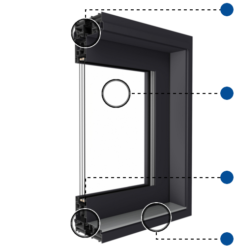 - Thermische Einlagen in Profil und Scheibenzwischenraum
