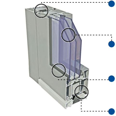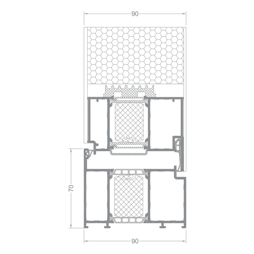 2-fache bis 3-fache Isolierverglasung bis zu einer Stärke von 90 mm (abhängig von der Variante); optional Spezialgläser einsetzbar