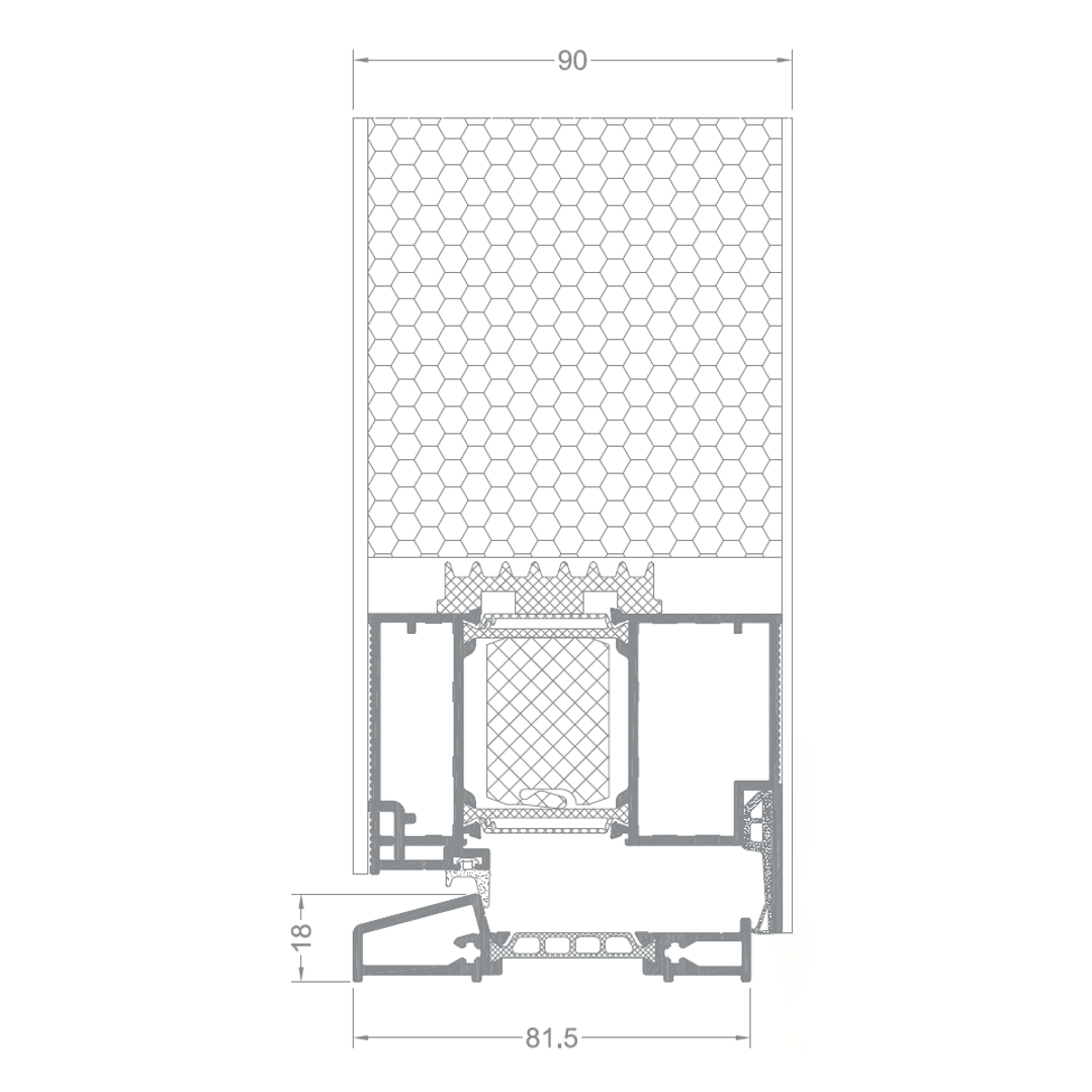 - Maximale Glasstärke von 72 mm (Einsatzfüllung: Glas), 83 mm (Aufsatzfüllung: einseitiges Panel) oder 90 mm (Aufsatzfüllung: zweiseitiges Panel)