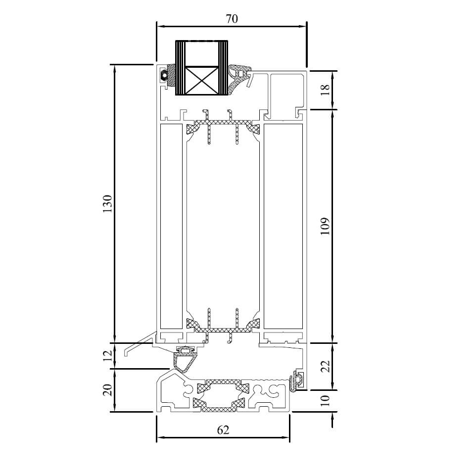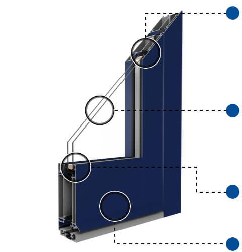 3-Kammersystem mit ausgezeichneter Stabilität. Gute Wärmedämmung durch thermische Trennung aus Glasfaser verstärktem Polyamid.