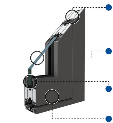 - Aluminiumprofil mit einer Bautiefe von 78 mm