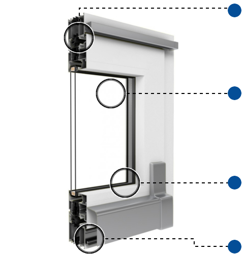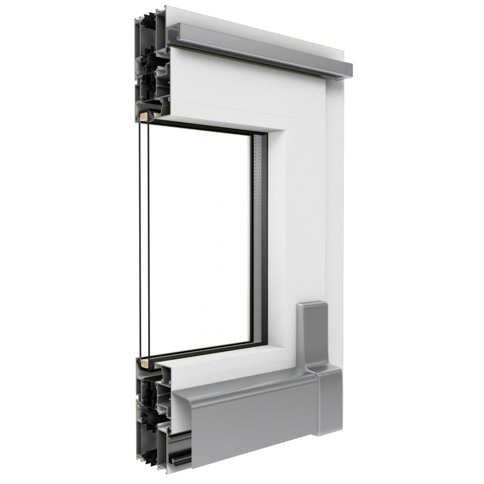 3-Kammerprofil aus Aluminium. Einbautiefen von 70 mm im Rahmen und 79 mm im Flügel.