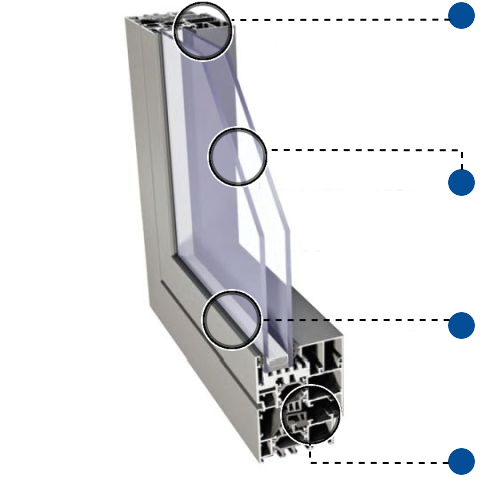 2-fache bis 3-fache Isolierverglasung bis zu einer Stärke von 59 mm; optional Spezialgläser einsetzbar