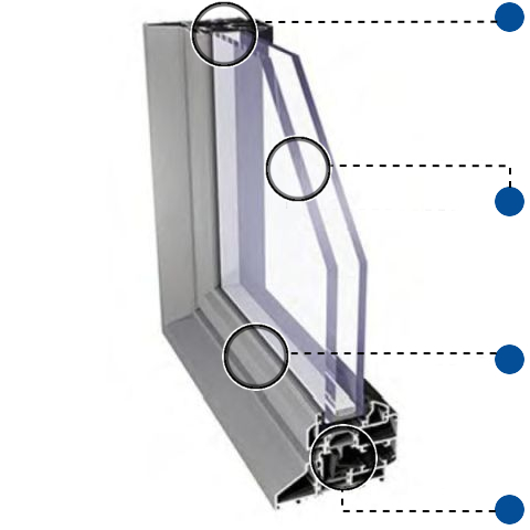 2-fache bis 3-fache Isolierverglasung bis zu einer Stärke von 43 mm; optional Spezialgläser einsetzbar