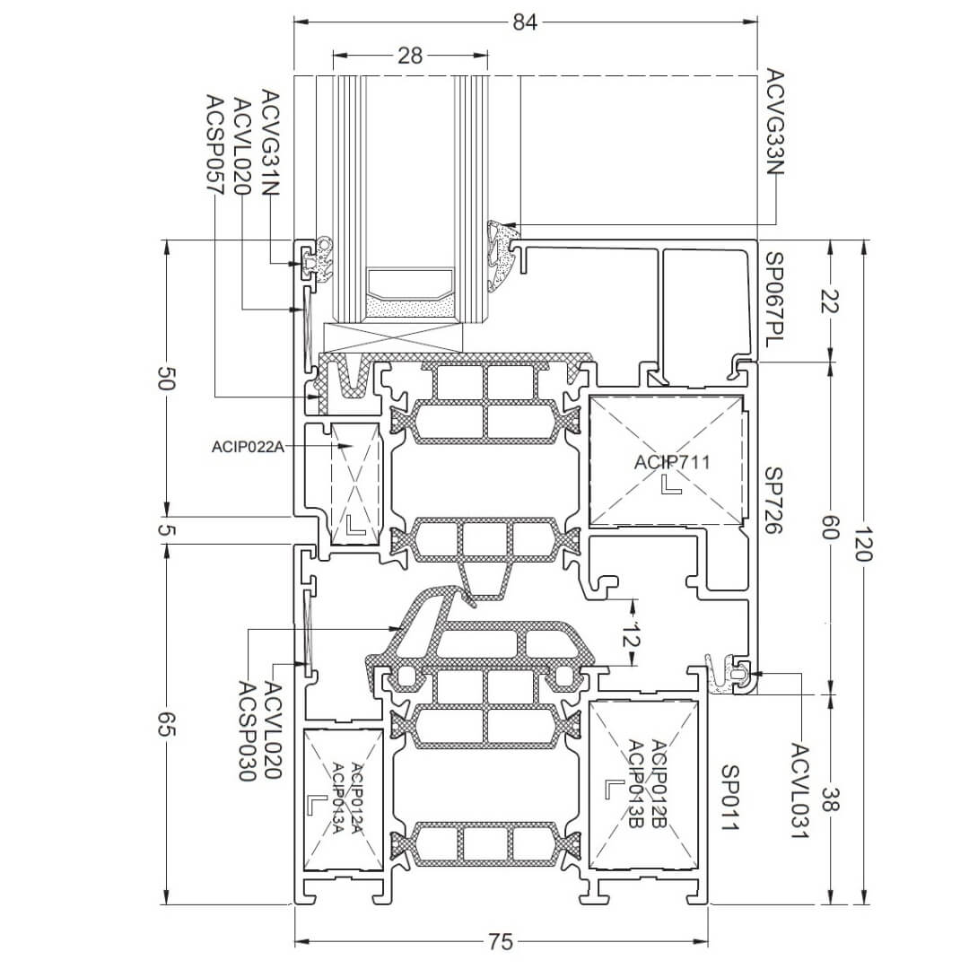 Aluminium systeem Aliplast Superial i+ - Profielweergaven