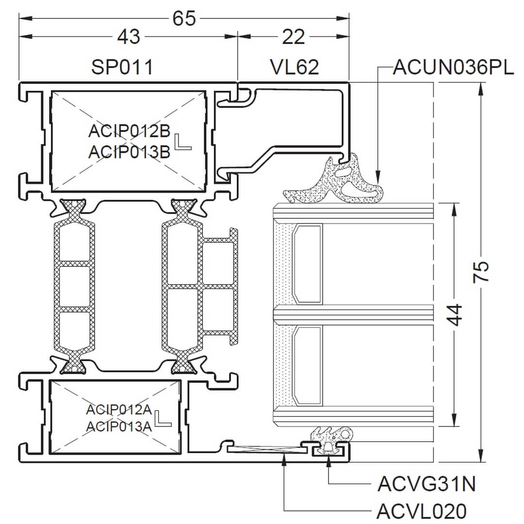 Aluminium systeem Aliplast Superial Standard - Profielweergaven