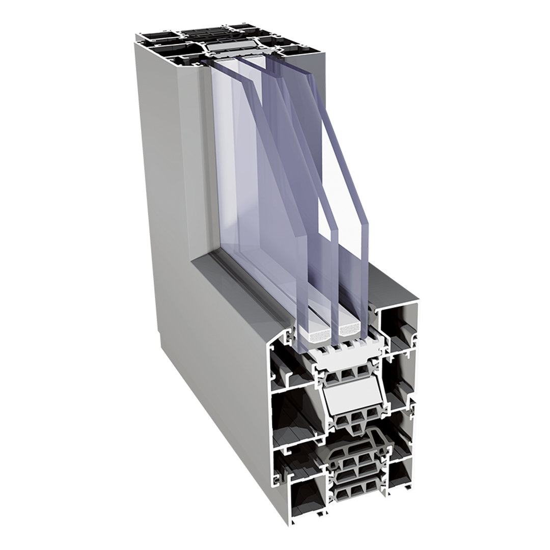 2- tot 3-voudige isolerende beglazing tot een dikte van 61 mm; optioneel kunnen speciale glazen worden toegepast