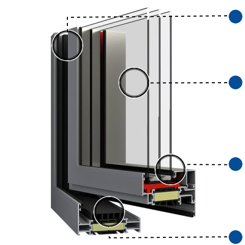 Stabiel meerkamermprofiel met thermische scheiding voor uitstekende warmte-isolatie. Inbouwdiepte van 88 mm met uitstekende thermische parameters.