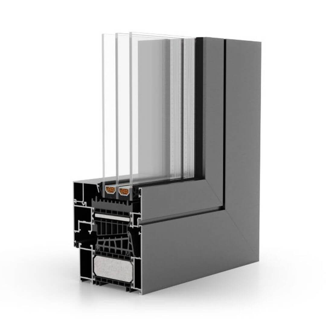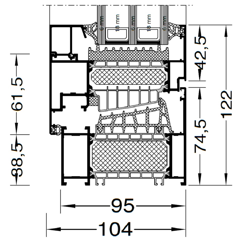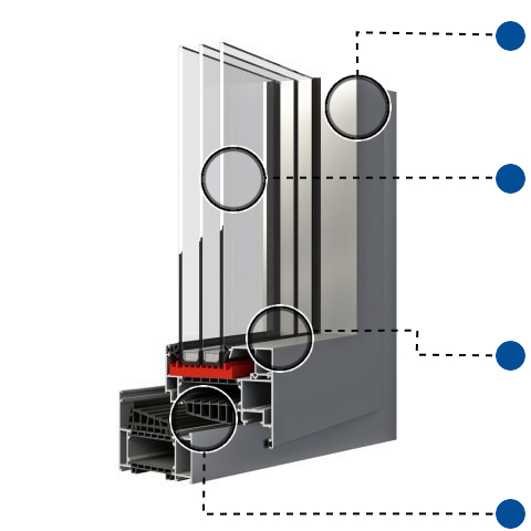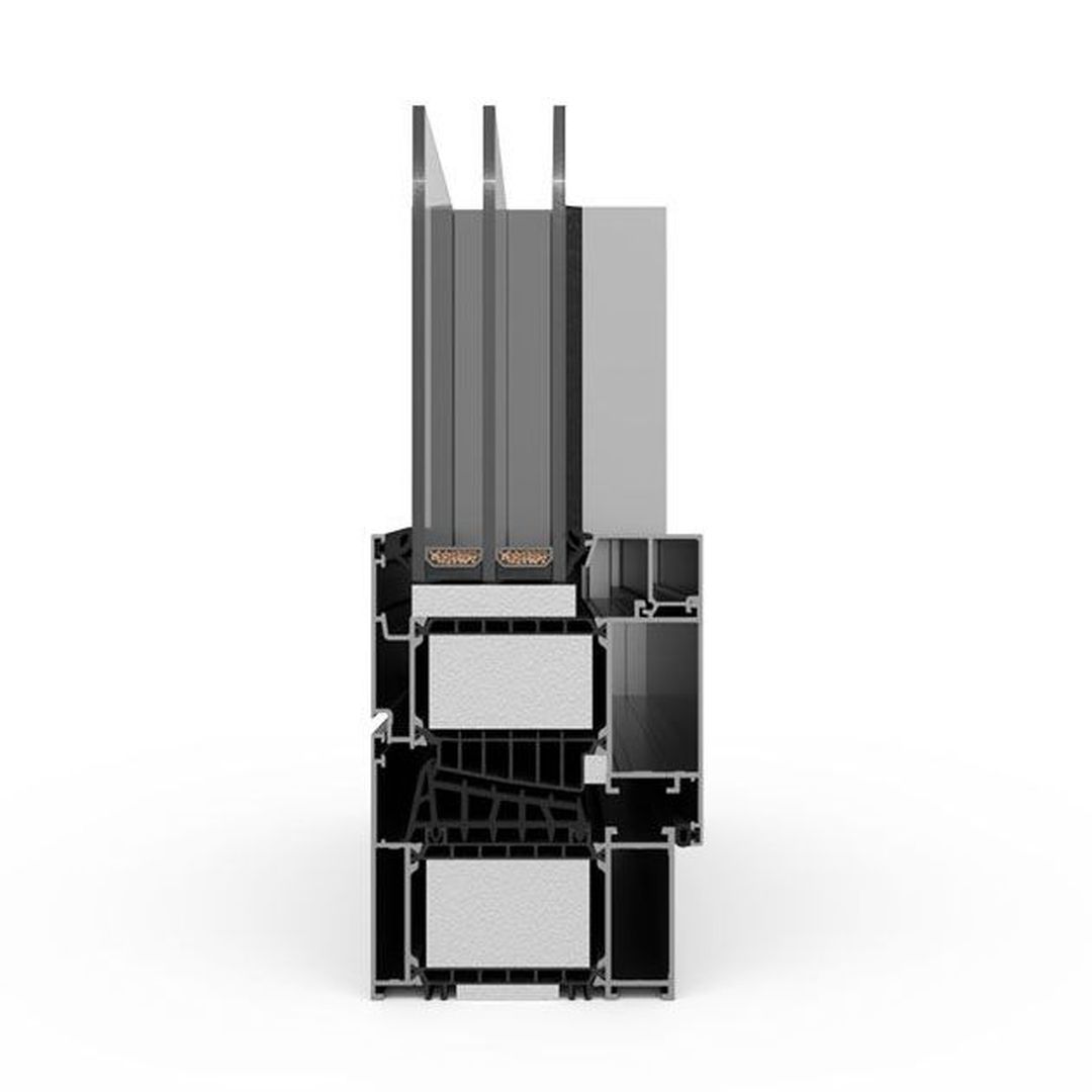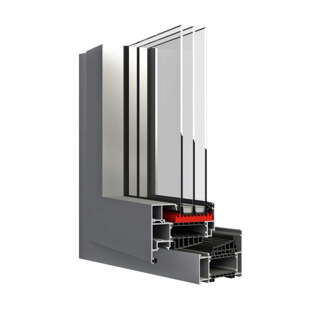 Perfecte warmte-isolatie dankzij 3-kamersysteem met een brede centrale isolatiekamer. Framebouwdiepte van 95 mm; Diepte van het vleugelprofiel van 104 mm.