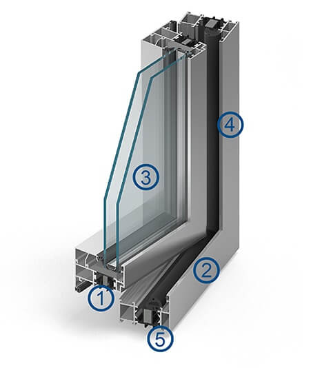 - Das MB-70 HI Aluminiumprofil ist mit thermischen Trennwänden für eine bessere Wärmeisolierung ausgestattet