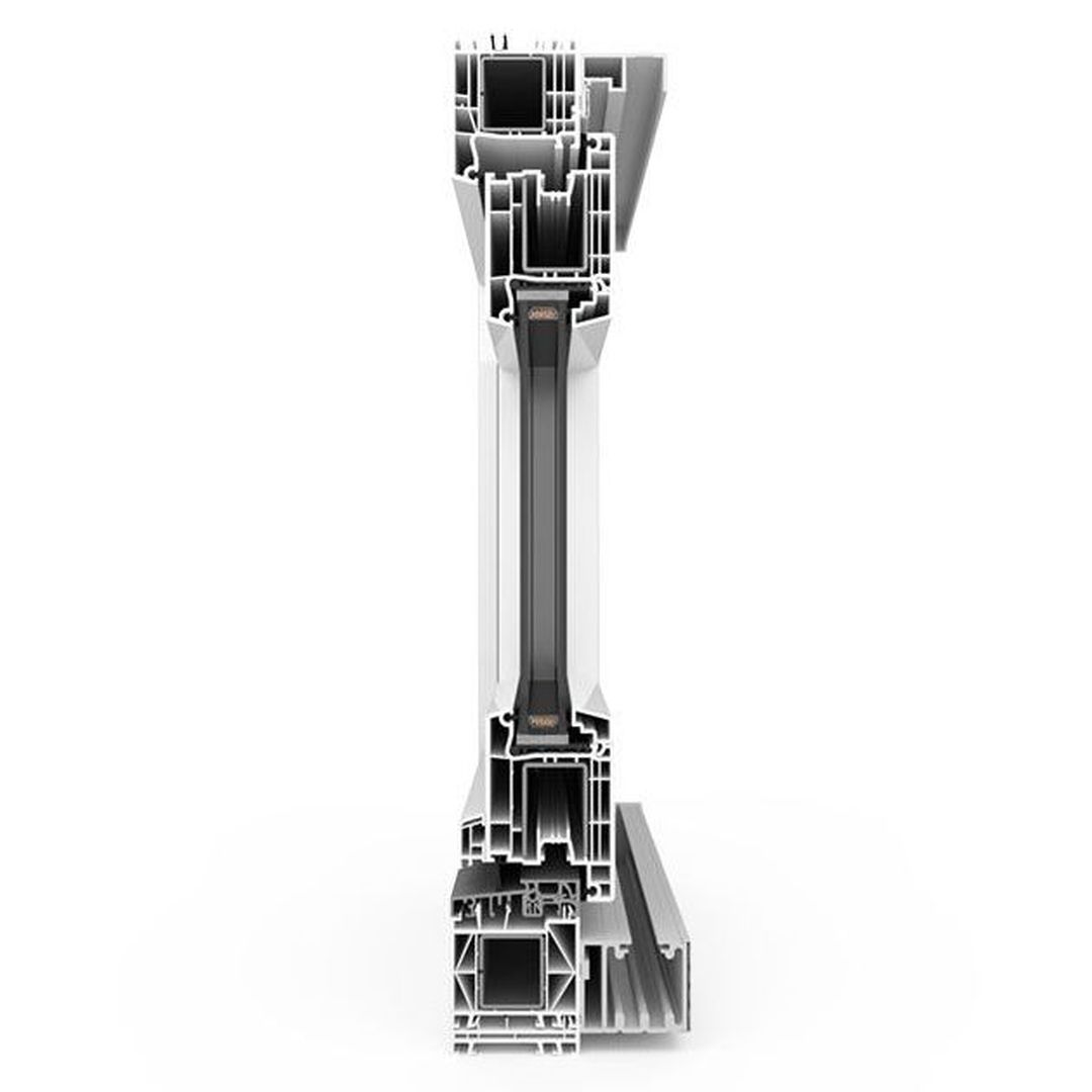 4-/5-Kammerprofil aus hochwertigem Kunststoff mit einer Rahmenbautiefe von 60 mm und thermischer Trennung durch die Kammern.