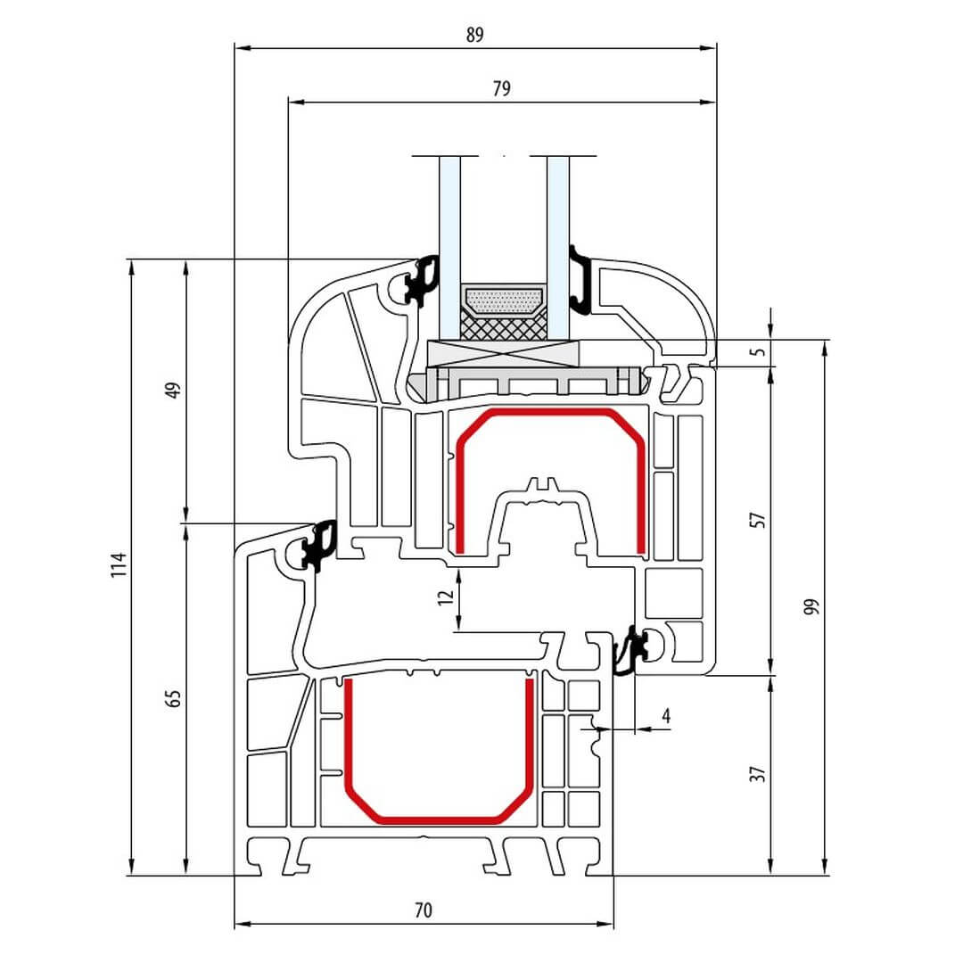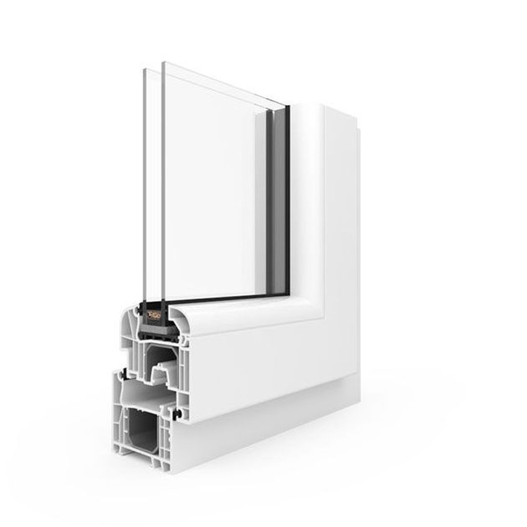 Hoogwaardige 5-kamersprofiel met een inbouwdiepte van 70 mm voor uitstekende warmte-isolatie en bewezen stabiliteit. Grote verstevigingskamer met staalversterking.