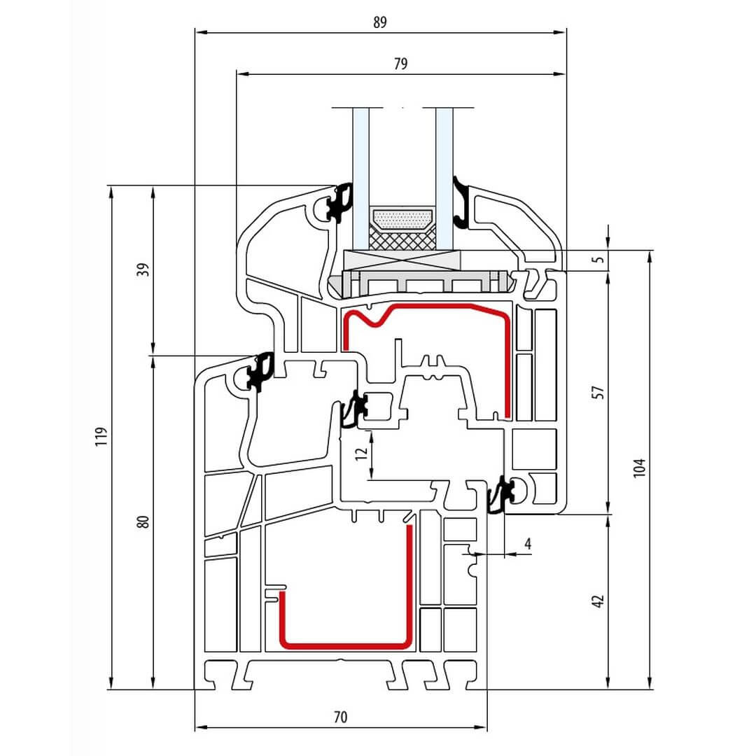 Hochwertiges 5-Kammerprofil mit 70 mm Einbautiefe für eine hervorragende Wärmeisolation und Sicherheit. Große Verstärkungskammer mit Stahlarmierung.