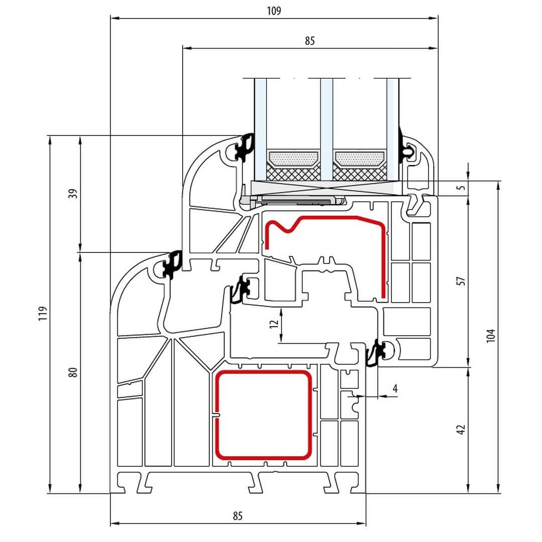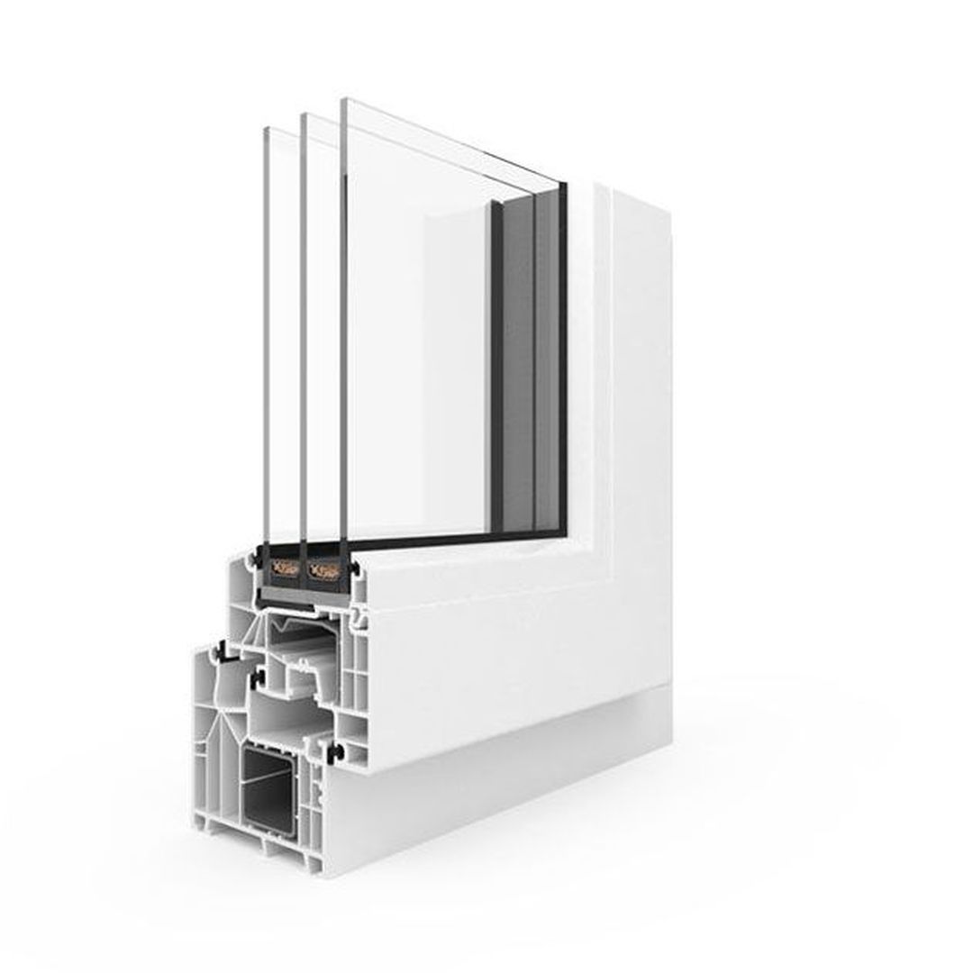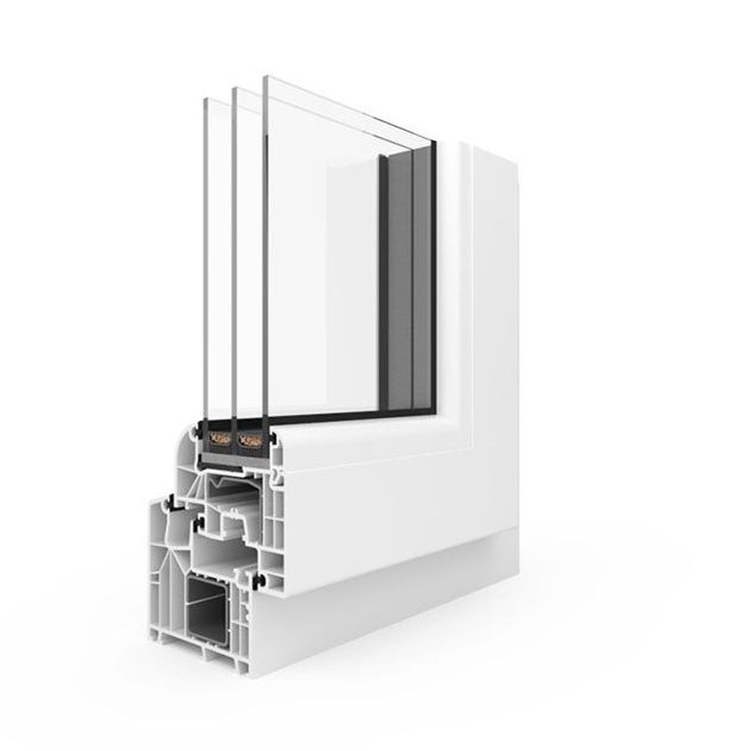 Hoogwaardig 6-kamersprofiel met 85 mm inbouwdiepte voor uitstekende warmte-isolatie en veiligheid. Grote verstevigingskamer met staalversterking.