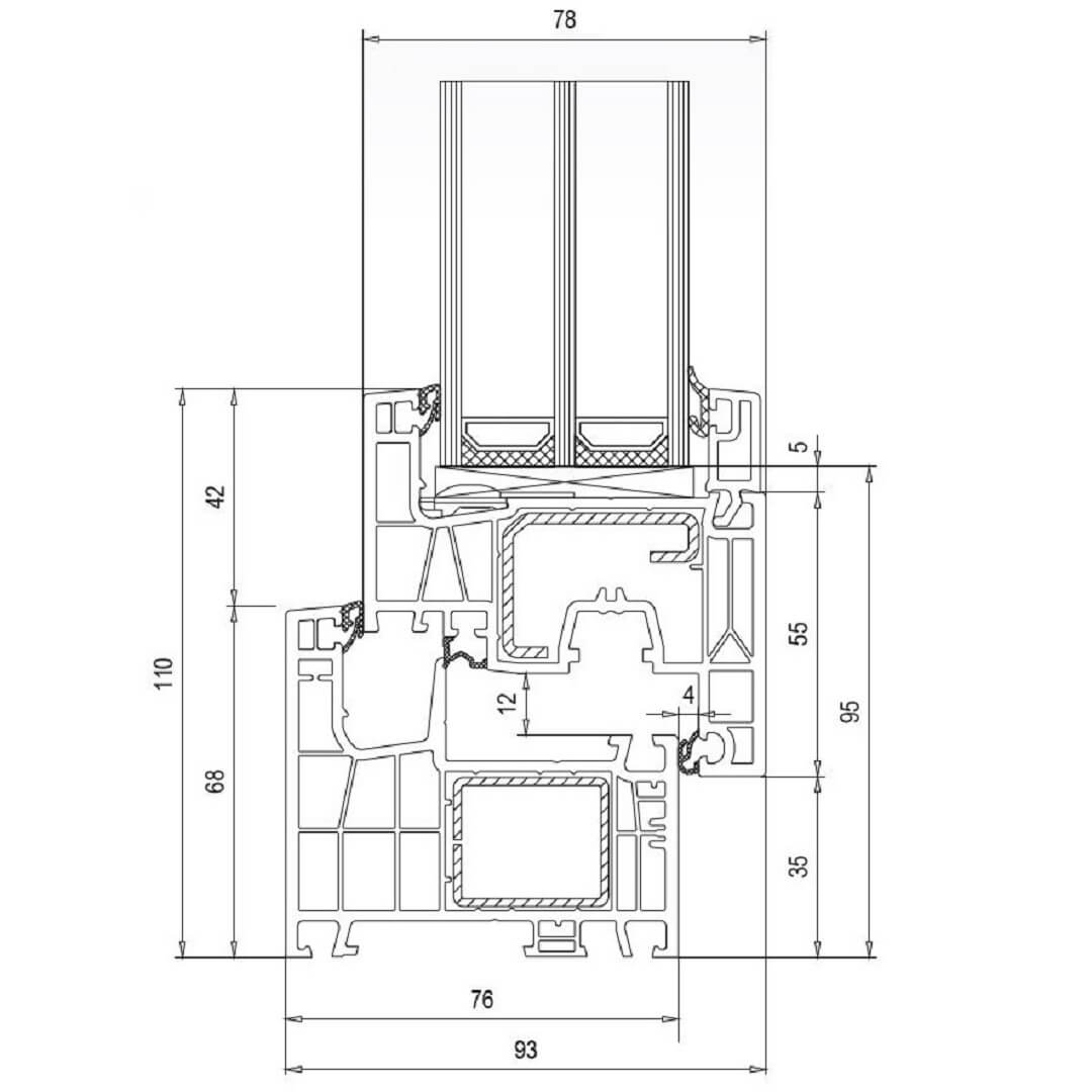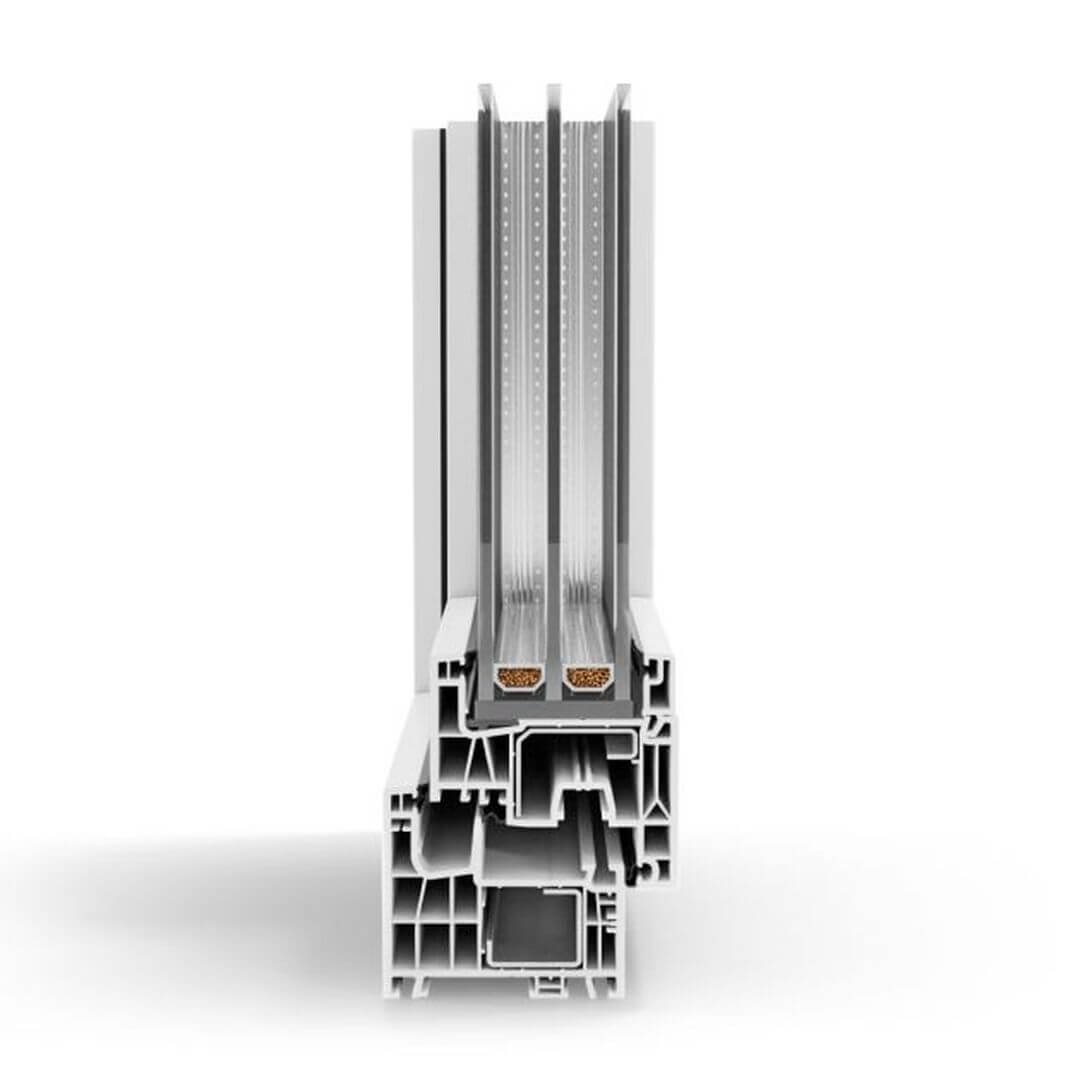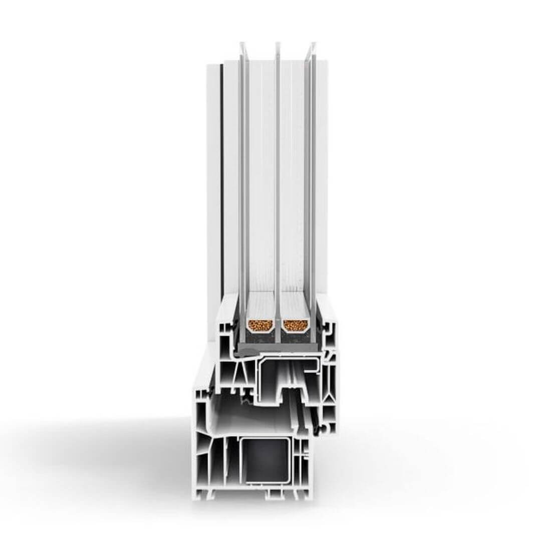 Hoogwaardig 5-/6-kamerprofiel met een inbouwdiepte van 76 mm voor uitstekende thermische isolatie en veiligheid. Grote verstevigingskamer met staalversterking.
