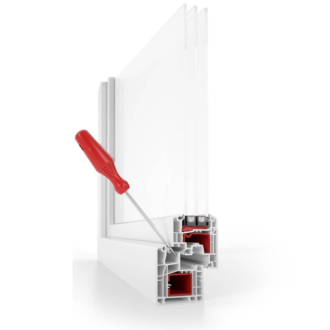 Als derde afdichting in het kozijn zorgt de rondom lopende vaste middensteun enerzijds voor verbeterde thermische isolatiewaarden, anderzijds bemoeilijkt hij het snel openwrikken van de vleugel. Met safetec inside verhoogt u de veiligheid van uw kozijn.