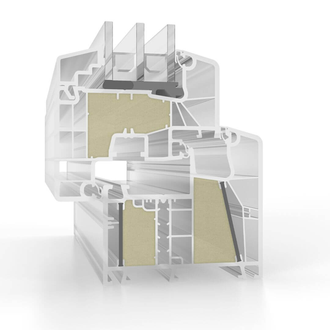 In plaats van staal wordt voor de versterking van de profielen een speciaal ontwikkelde, glasvezelversterkte kunststof gebruikt, die direct in het profiel wordt ingebracht bij de fabriek en aanzienlijk betere thermische isolatiewaarden mogelijk maakt.
