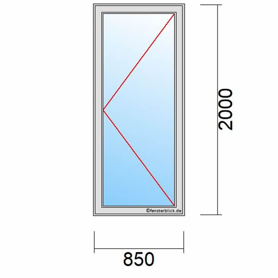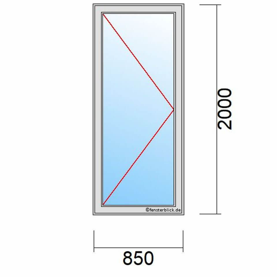 Eine Balkontür mit einer Breite von 850 mm kann verschiedene Öffnungsrichtungen haben. Die drei beliebtesten Optionen sind: Festverglasung, Dreh Öffnung oder Dreh-Kipp Öffnung. Die Dreh-Kipp Balkontür-Öffnung verbindet 2 Öffnungsarten und ist besonders beliebt. Weiter zu Balkontürtypen