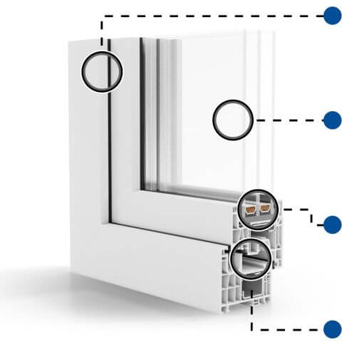 5-/6-Kammer-Profil mit 76 mm Einbautiefe für herausragende Wärmedämmung und Festigkeit.