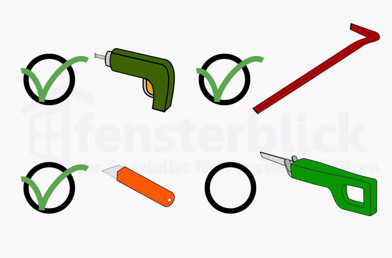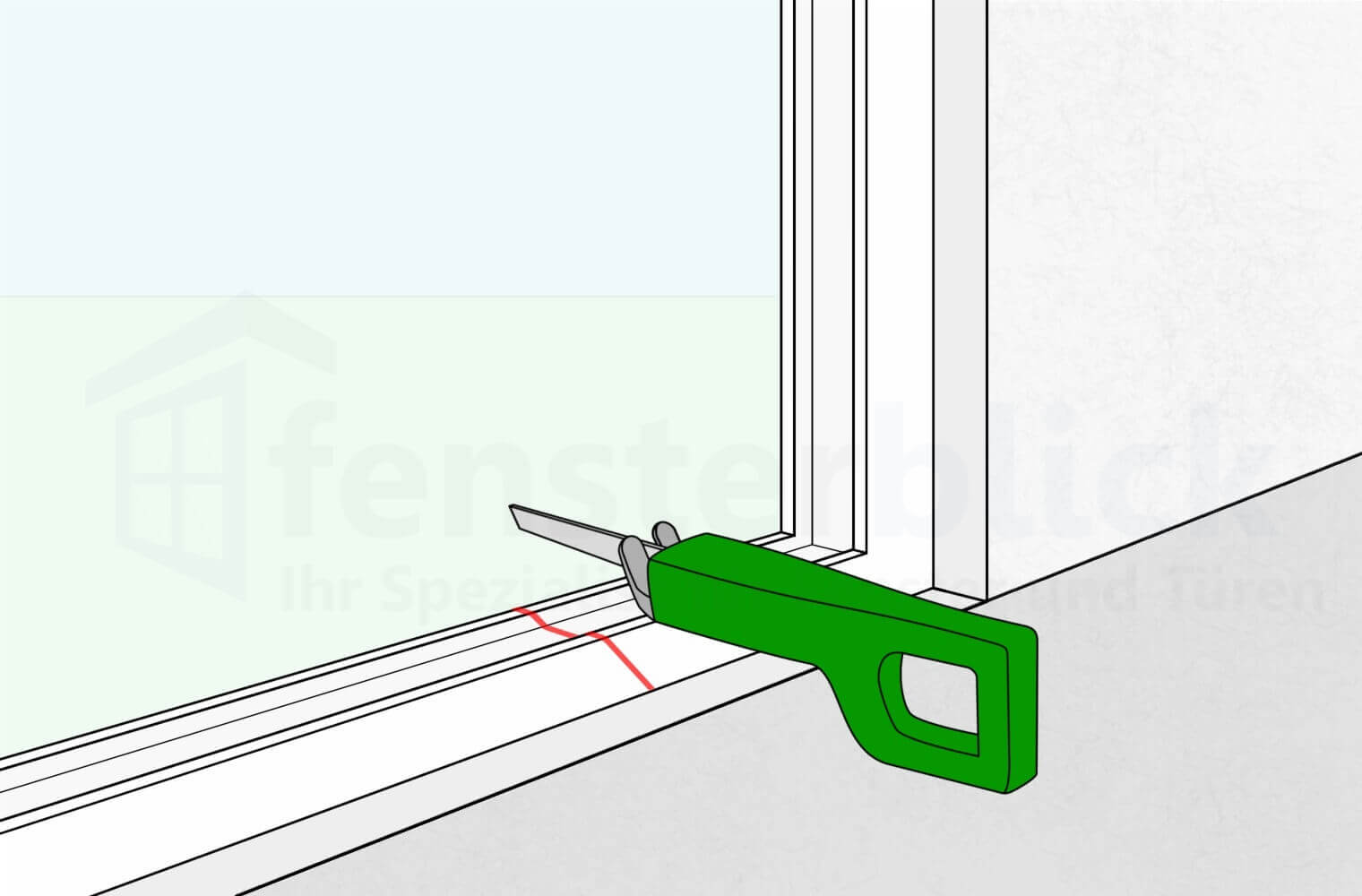 Bei Balkontüren mit Rollläden ist es zusätzlich notwendig die Führungsschienen zu entfernen. Dazu können Sie ebenfalls das Brecheisen benutzen und die Schienen vorsichtig aushebeln.
