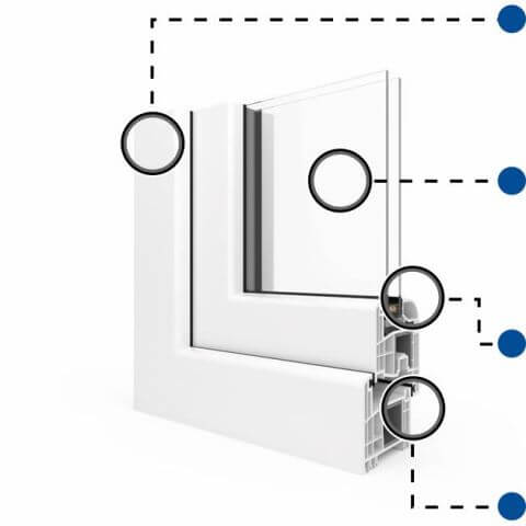 3-fach Verglasung bis 40 mm für optimalen Wärme- und Schallschutz.