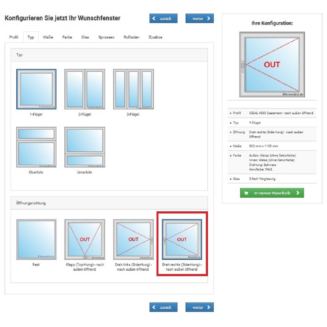 2.) Kies de gewenste buitendraaiende openingsrichting