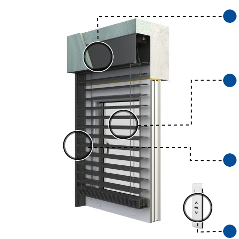 Das moderne Sonnenschutzsystem vereint eine einfache Montage, vielfältige Einbau- und individuelle Gestaltungsmöglichkeiten. So können Sie den Kasten sichtbar oder unsichtbar in die Laibung einlassen oder ihn auch auf die Mauer aufsetzen. Der Lamellenbehang ist bereits integriert, sodass Sie lediglich die Führungsschienen einstecken müssen und schon ist die Montage vor dem Fenster abgeschlossen. Die Bedienung erfolgt über einen mechanischen Motor oder Sie entscheiden sich für noch mehr Komfort und wählen die elektronische Variante.
