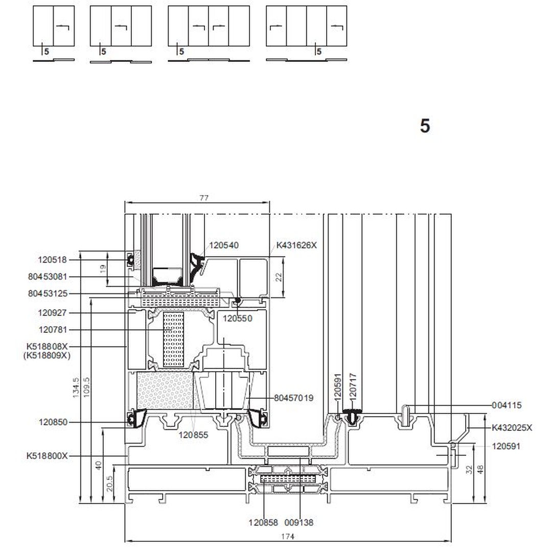 Hebeschiebetürprofil Aluprof MB-77hi Querschnitte