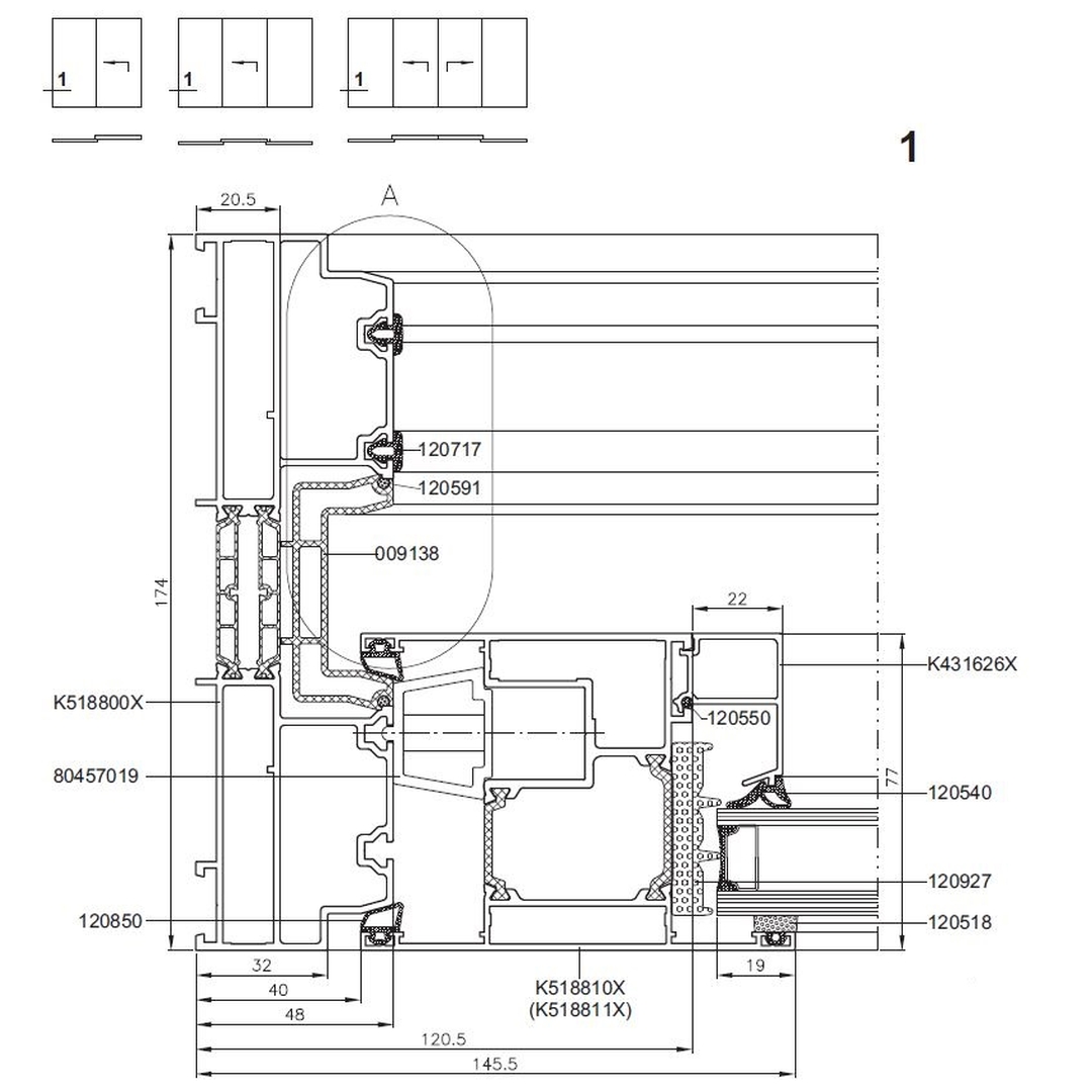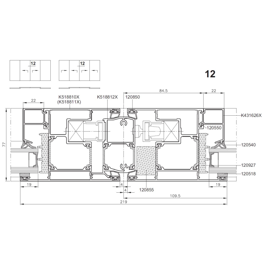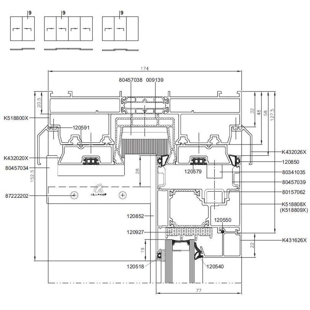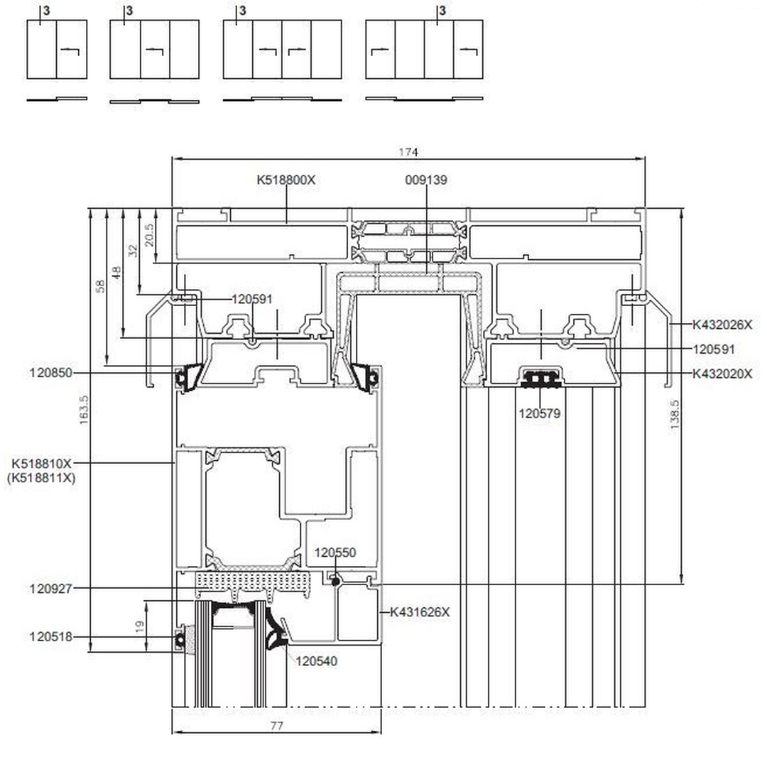 Hebeschiebetürprofil Aluprof MB-77 Querschnitte