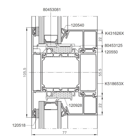 MB-77 Glasteilende Sprosse/Kämpfer 105,5 mm