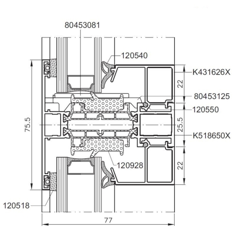MB-77 Glasteilende Sprosse/Kämpfer 75,5 mm