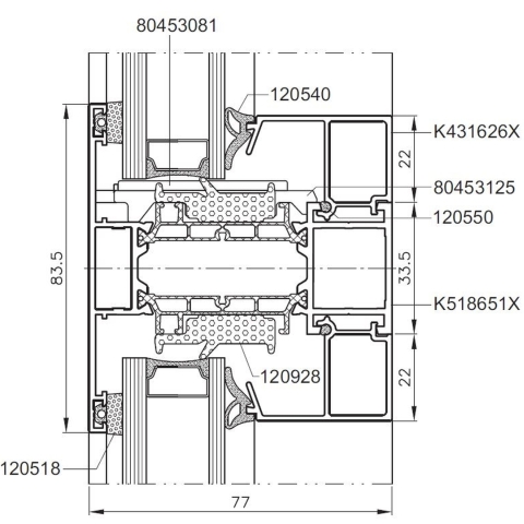 MB-77 Glasteilende Sprosse/Kämpfer 83,5 mm