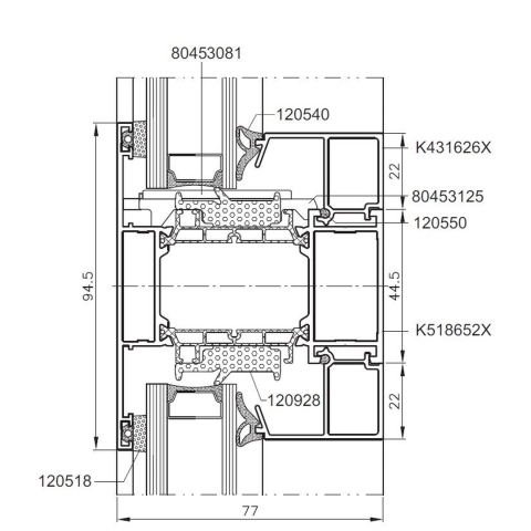 MB-77 Glasteilende Sprosse/Kämpfer 94,5 mm