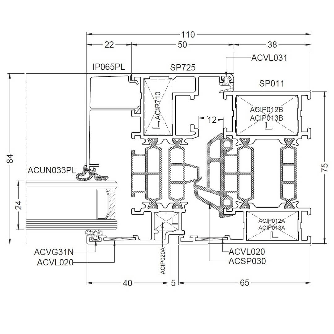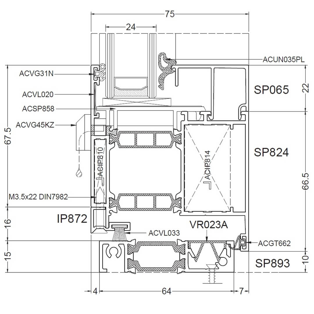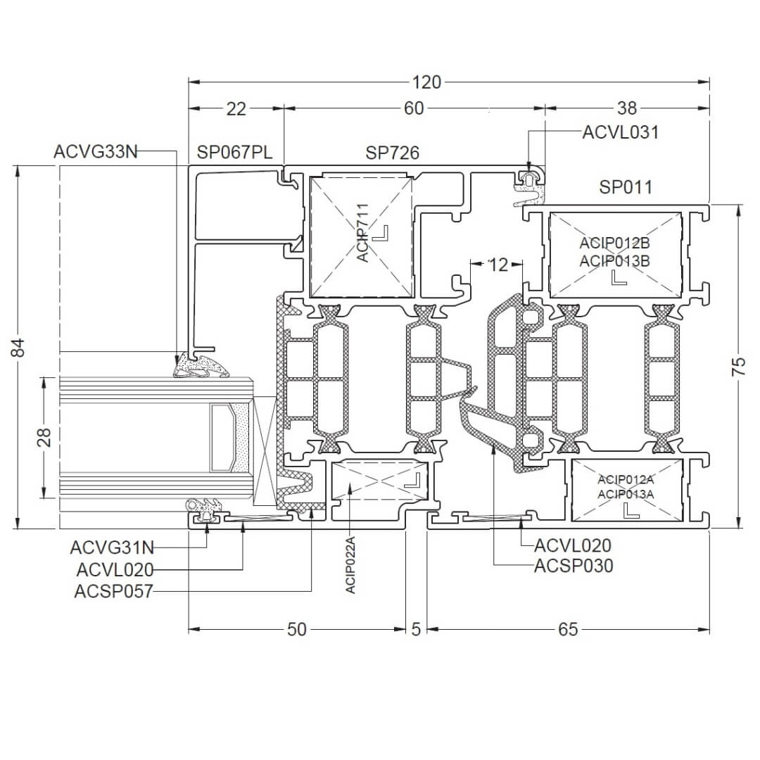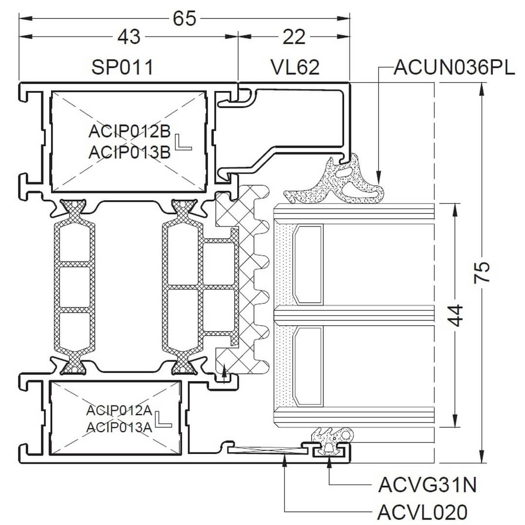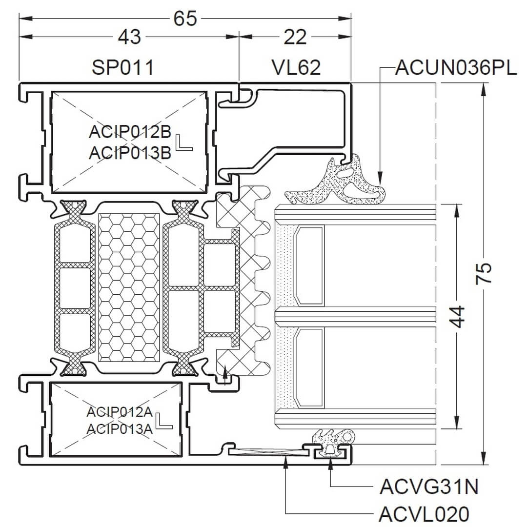 Alufenster Aliplast Superial Fenster Querschnitte Rahmen 65mm (SP011)
