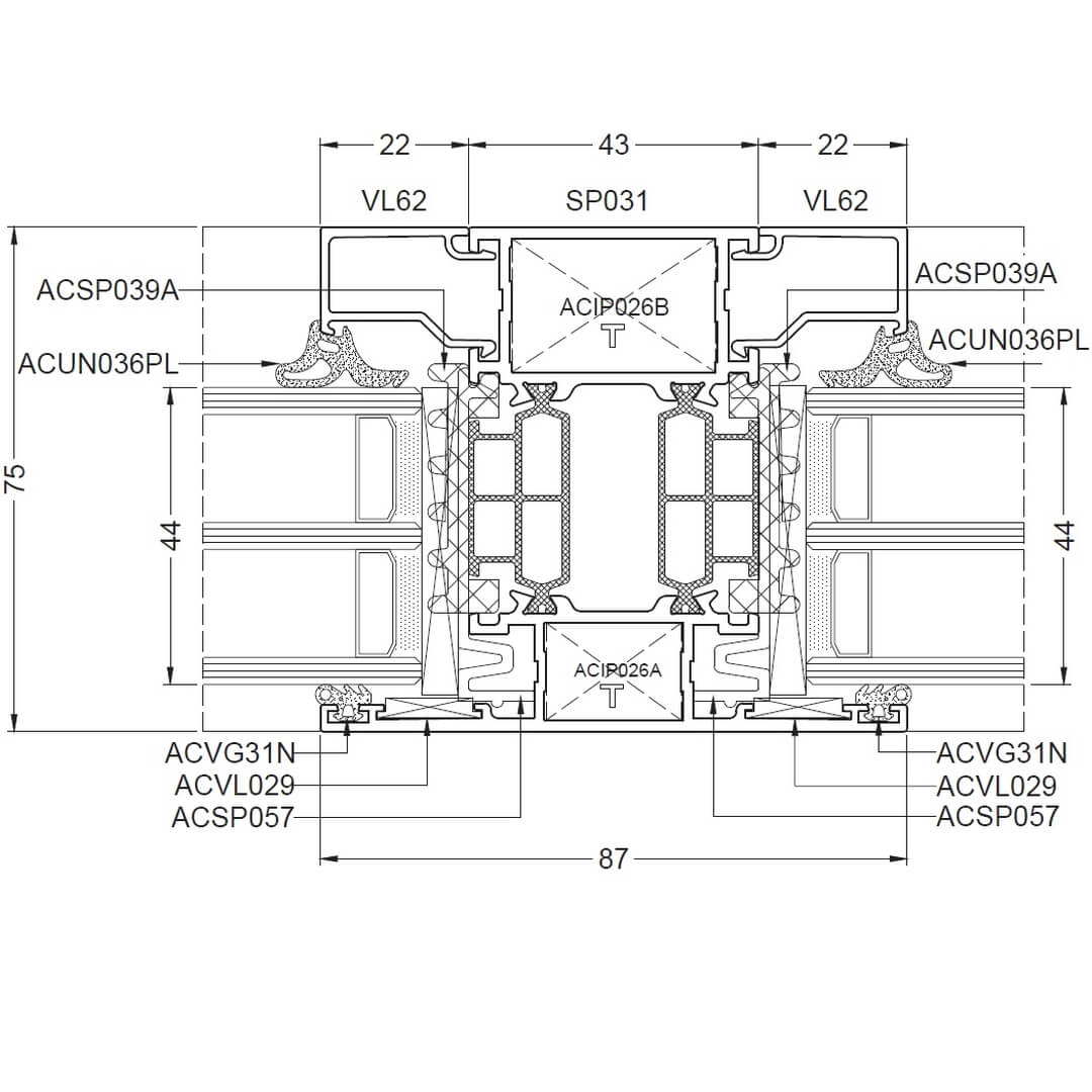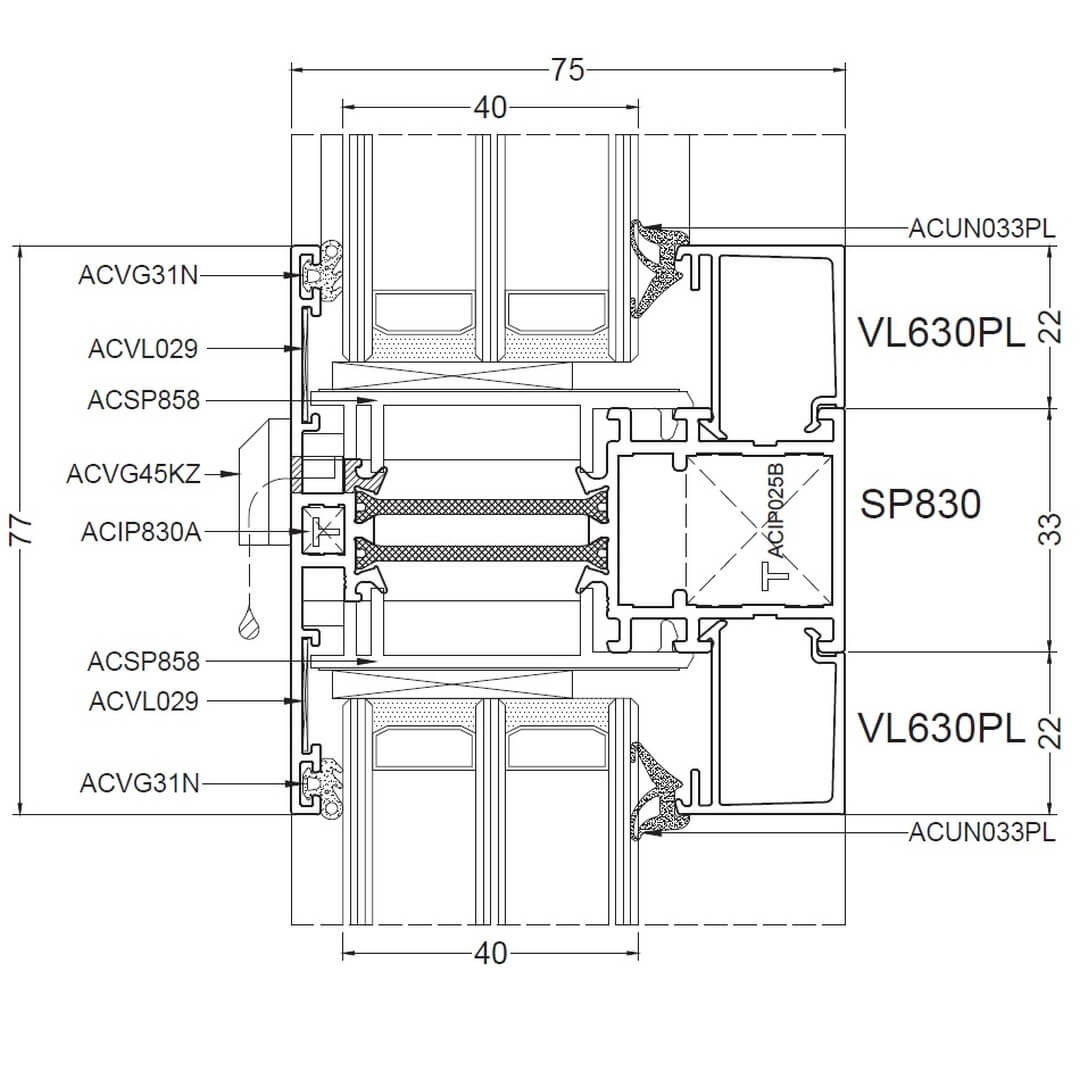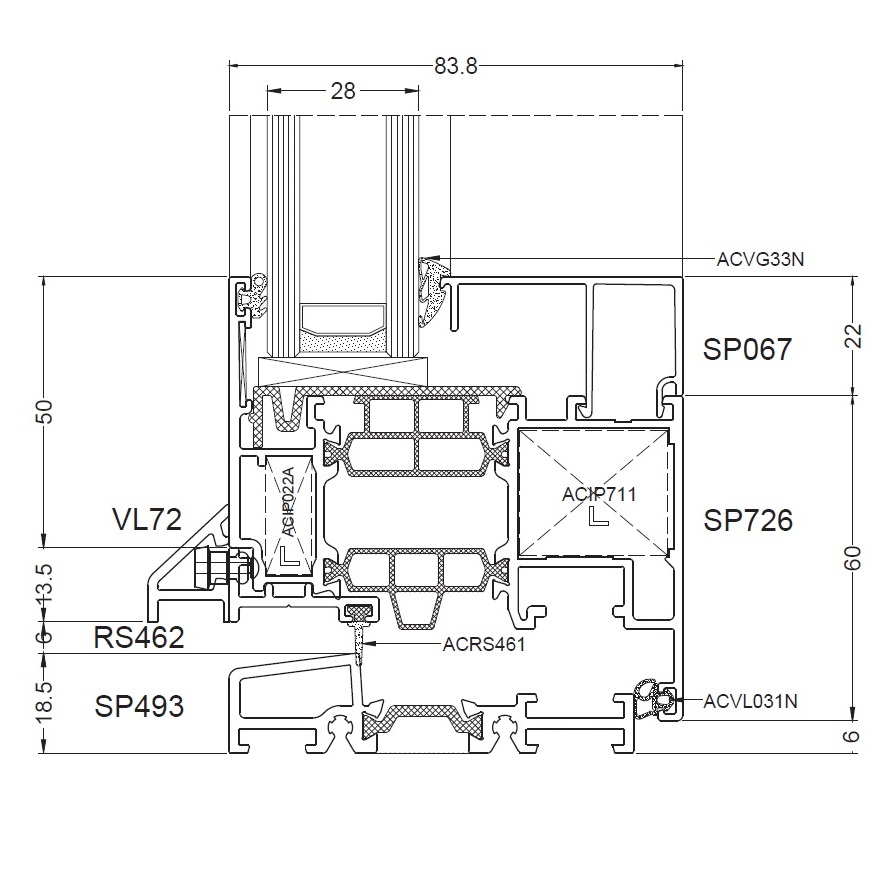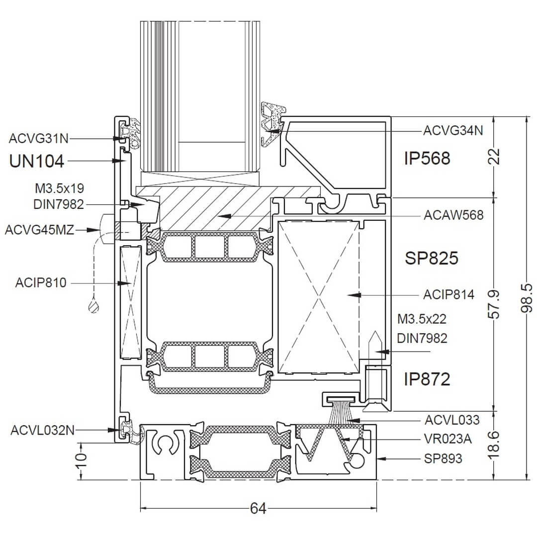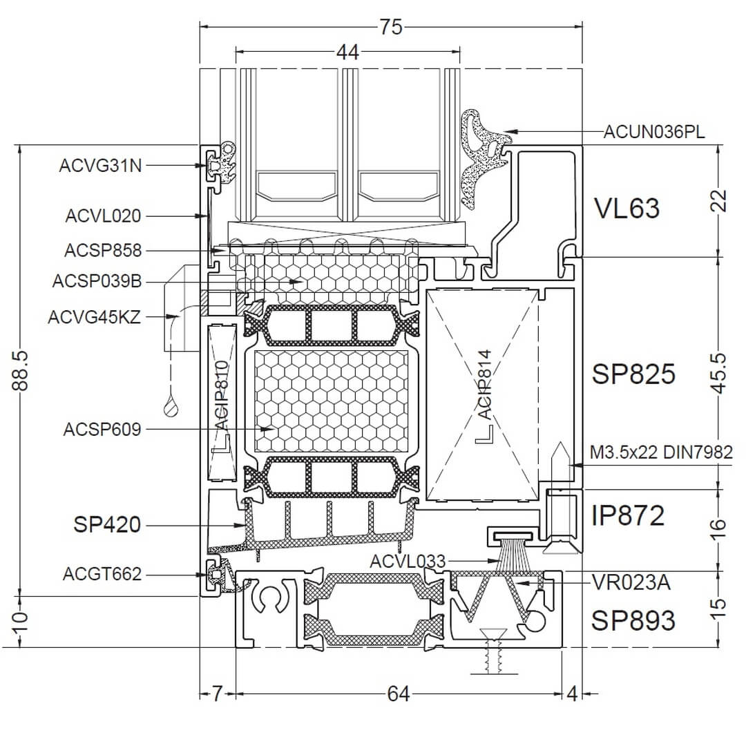 Alufenster Aliplast Superial Fenster Querschnitte Rahmen 65mm (SP011)