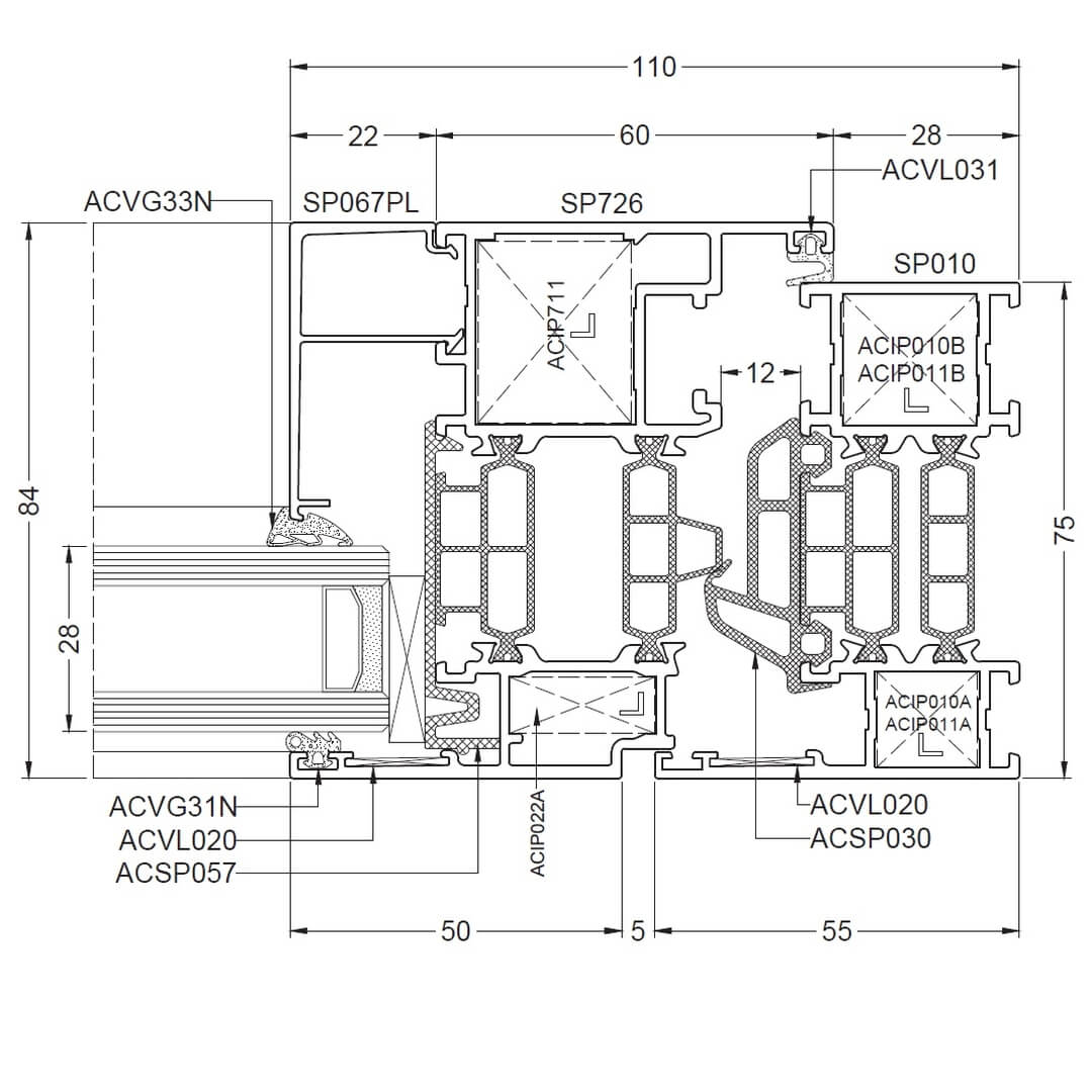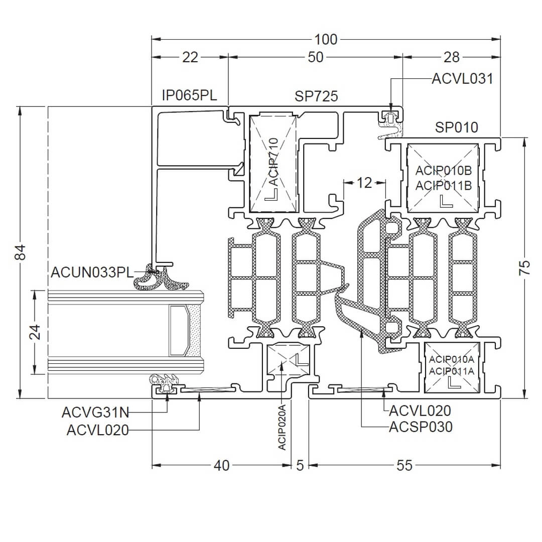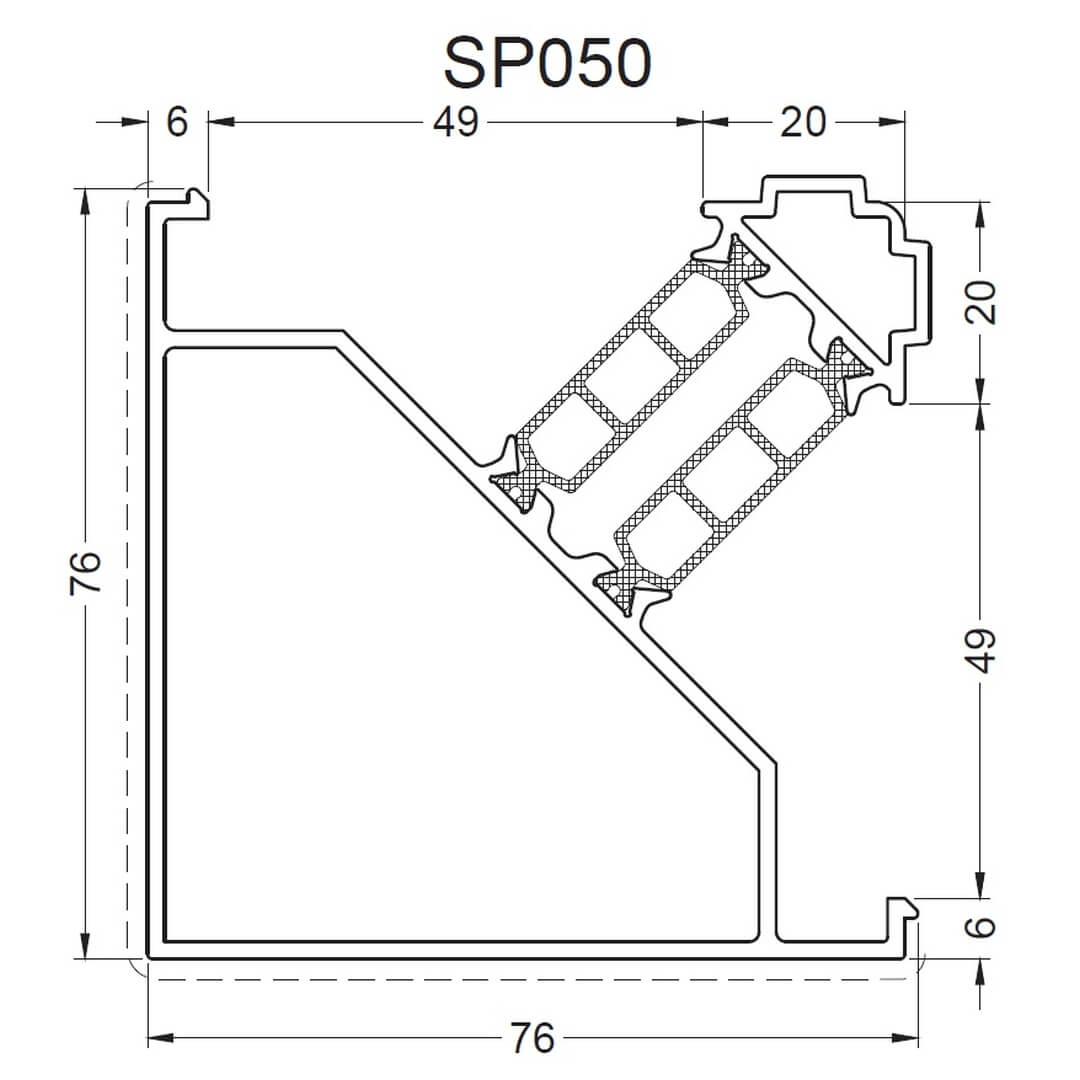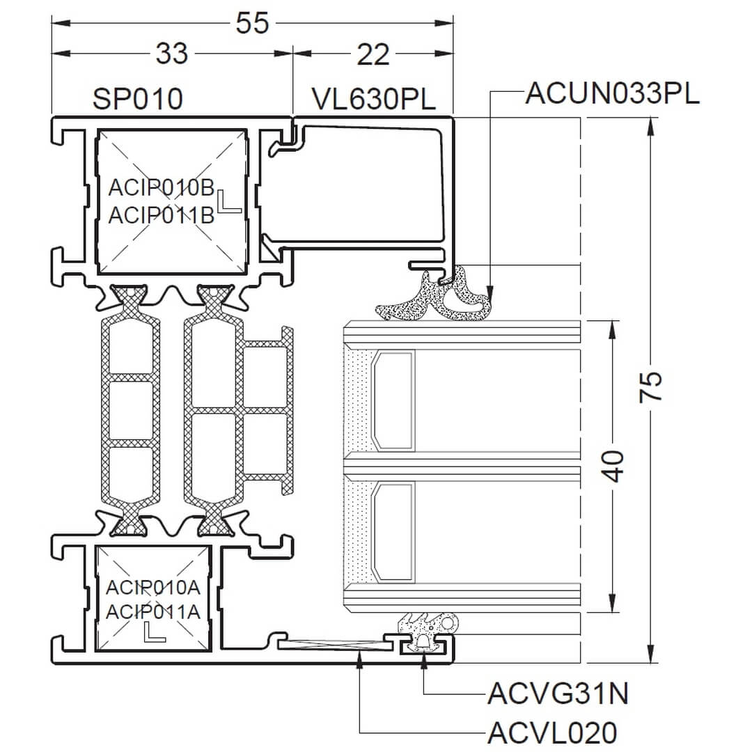 Alufenster Aliplast Superial Fenster Querschnitte Rahmen 55mm (SP010)