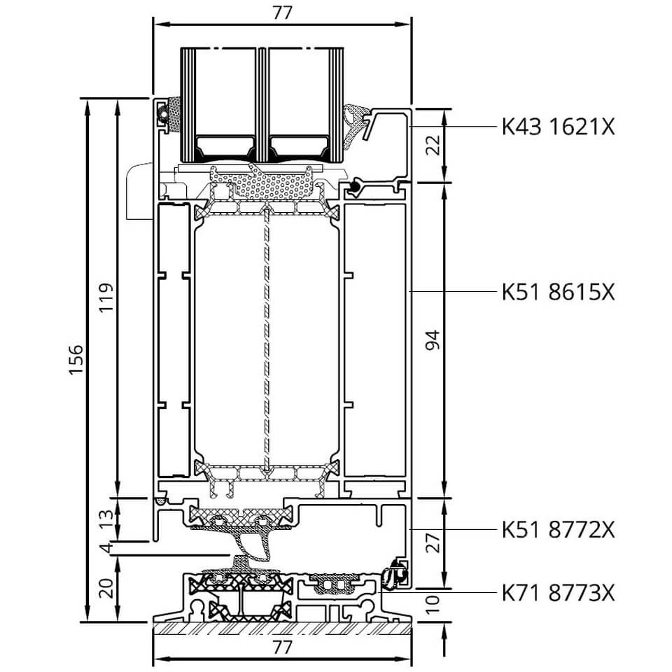 MB-86 SI Festverglasung mit Anschlussprofil