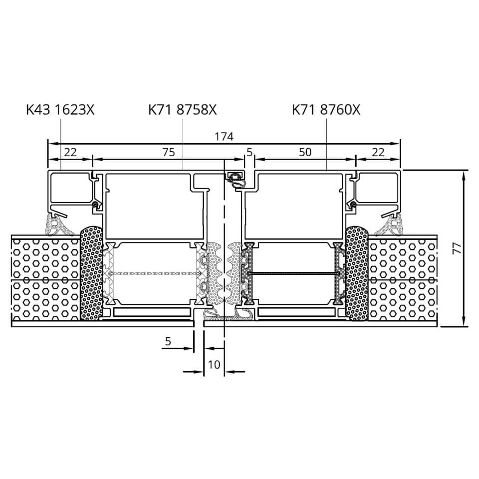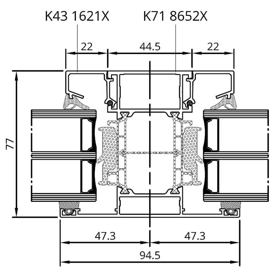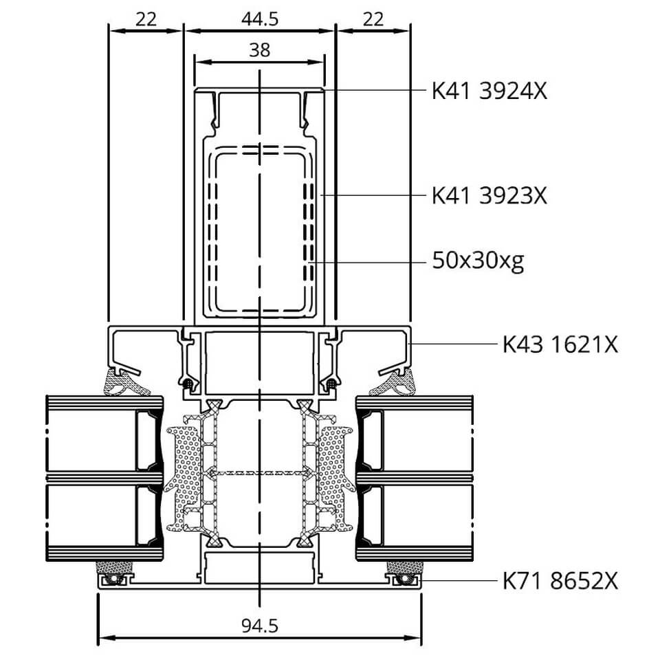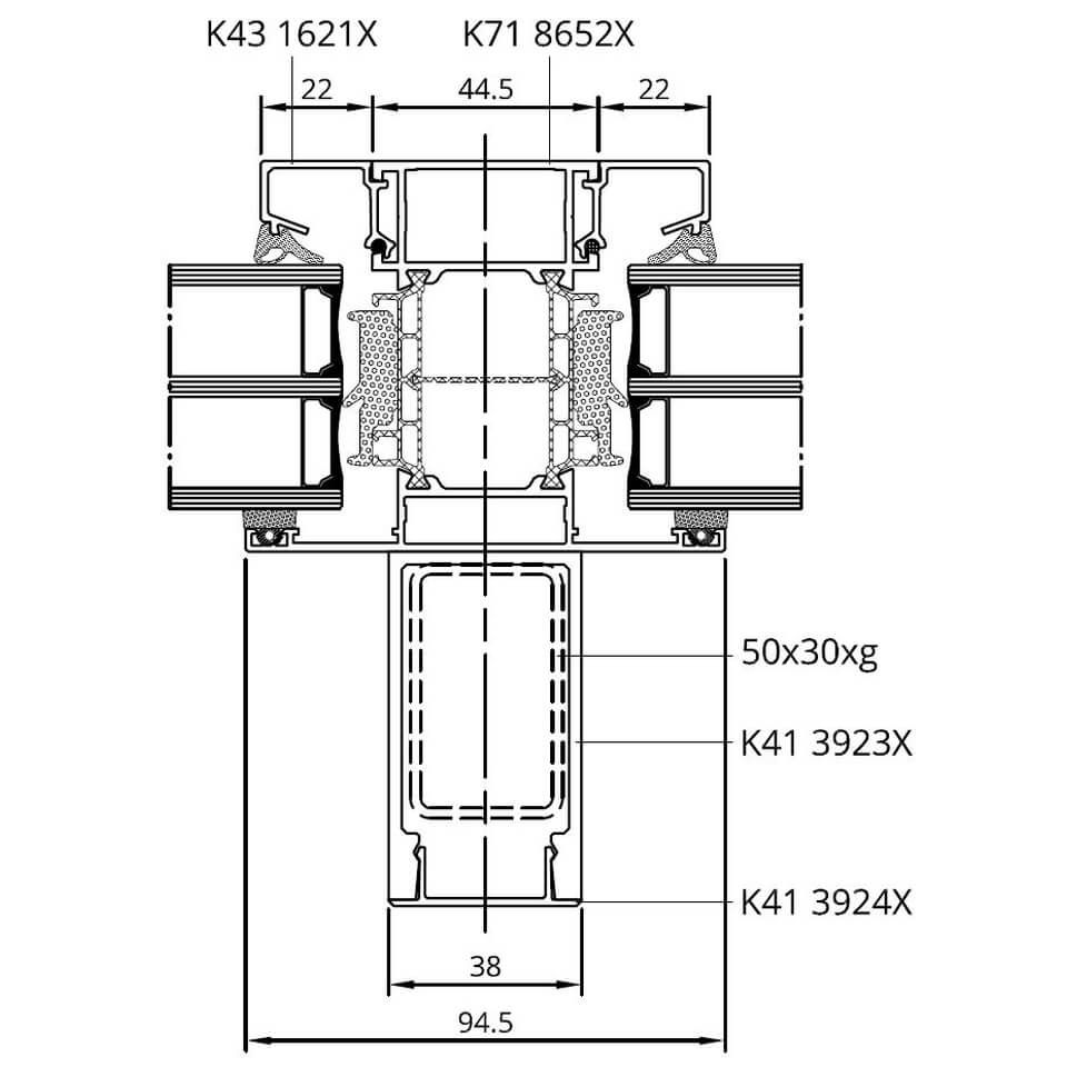 MB-86 SI Glasteilende Kämpfer-Sprosse mit statischem Pfosten außen