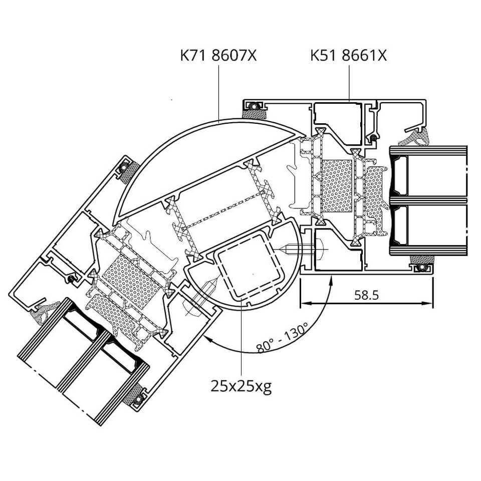 MB-86 SI Eckkopplung Variabel außen schmaler Winkel