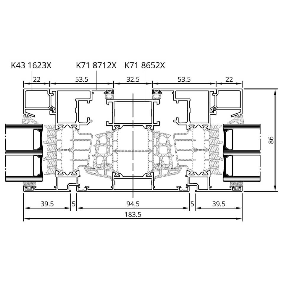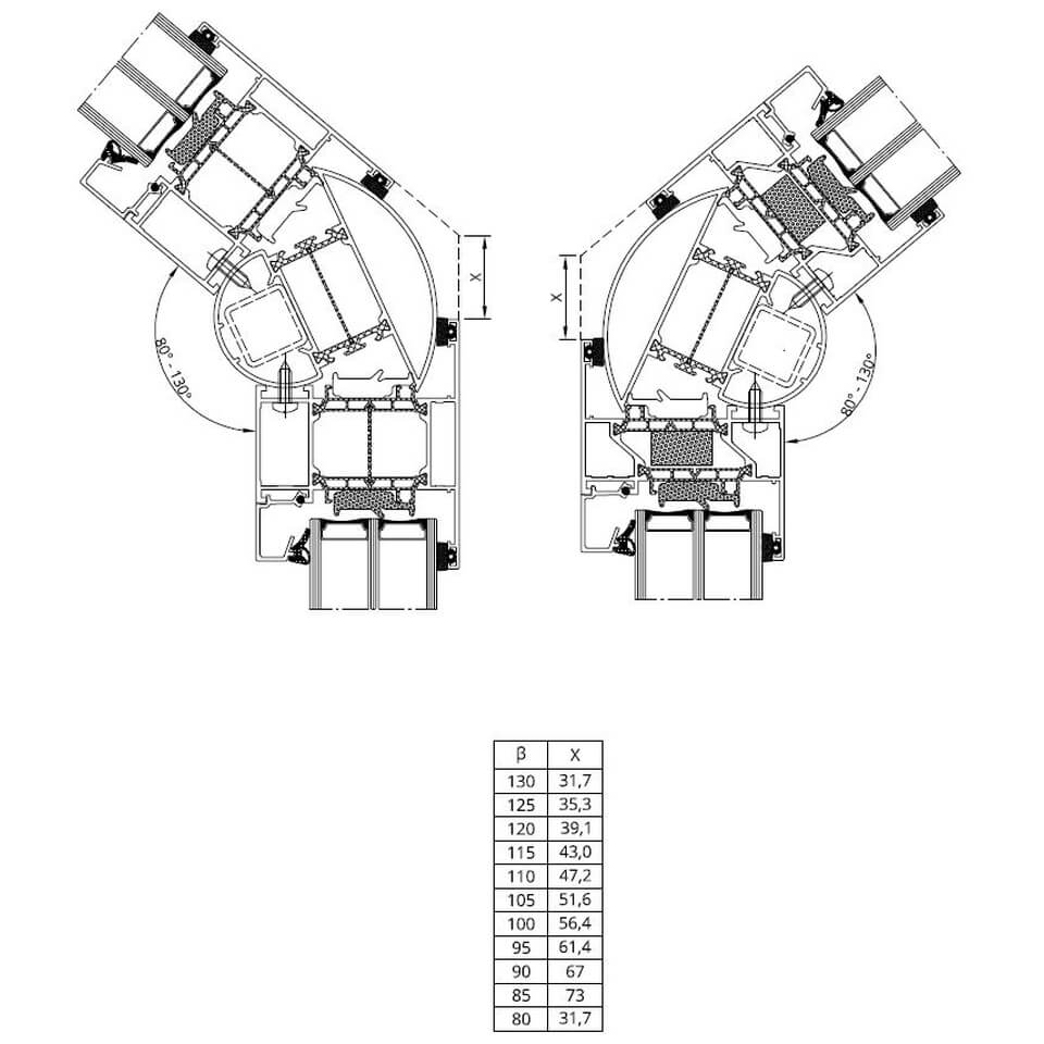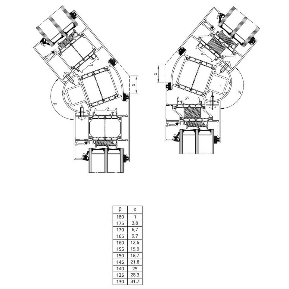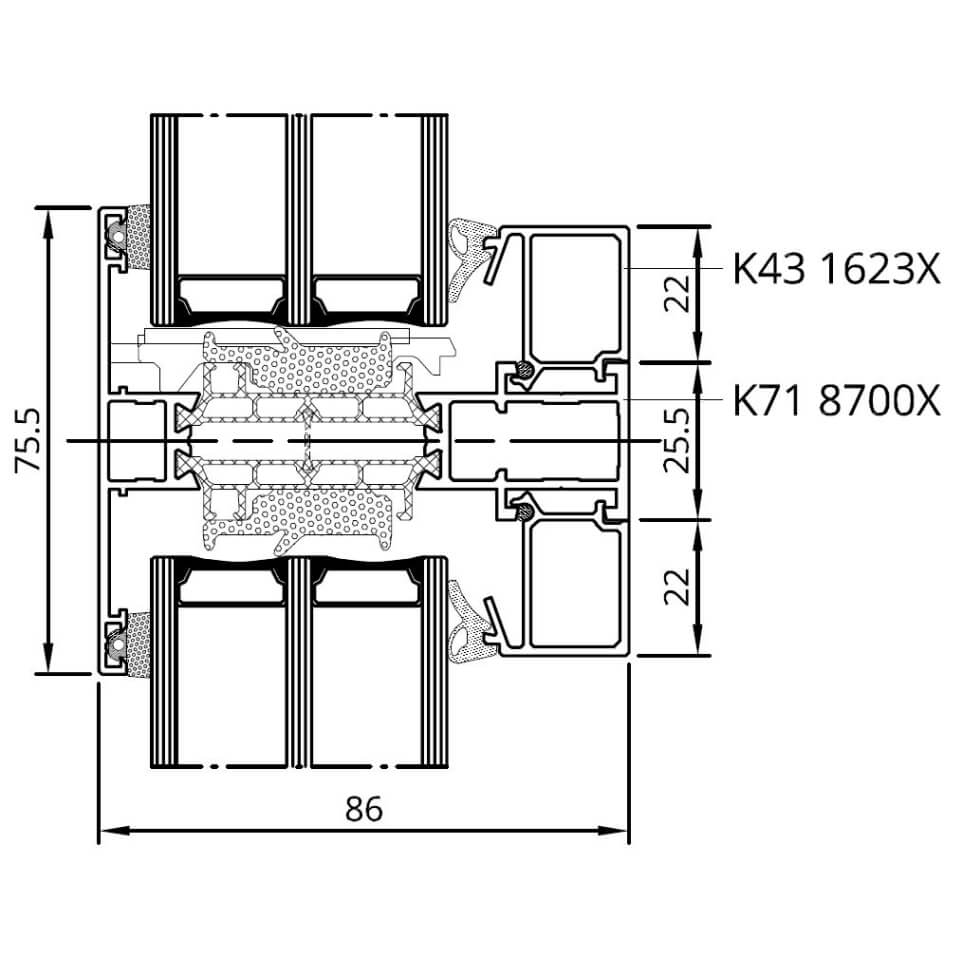 Aluminiumfensterprofil MB-86 SI Querschnitte