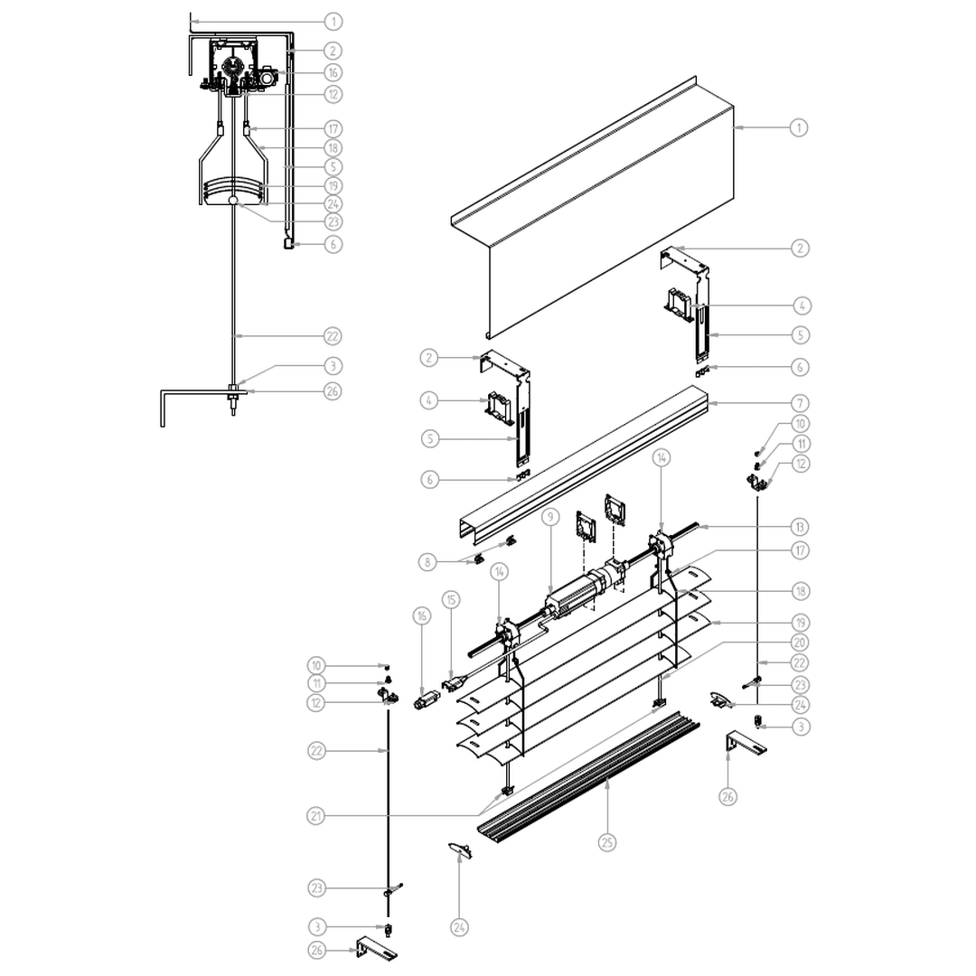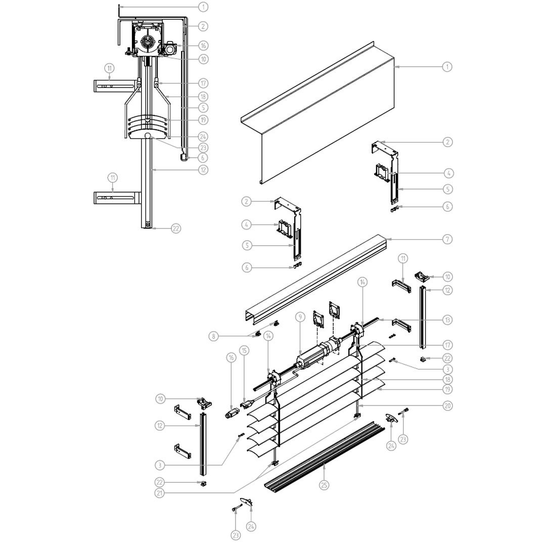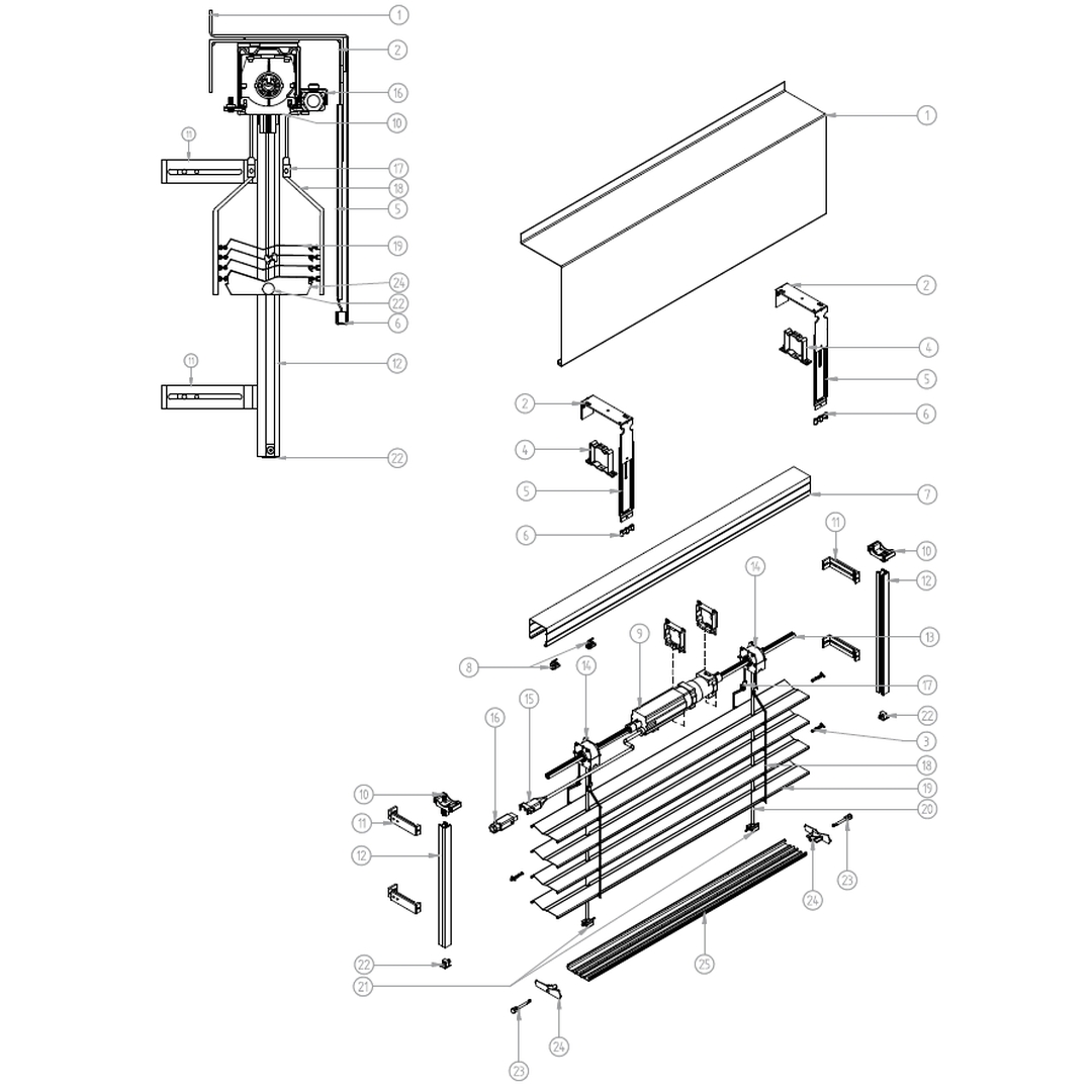 Außenjalousien Raffstore PZF Explosionszeichnung