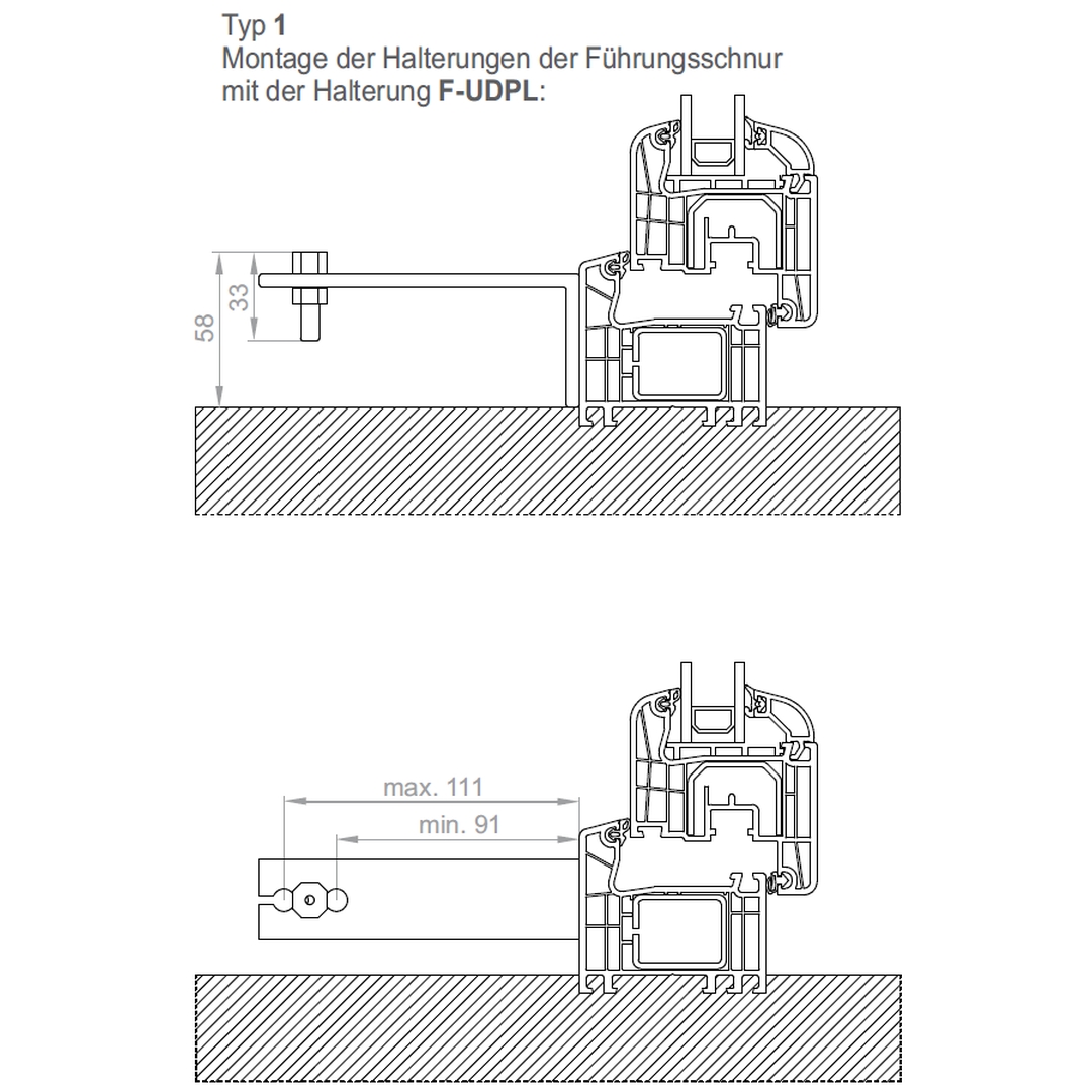 Raffstore PZF Schnurführungsschiene Montagearten