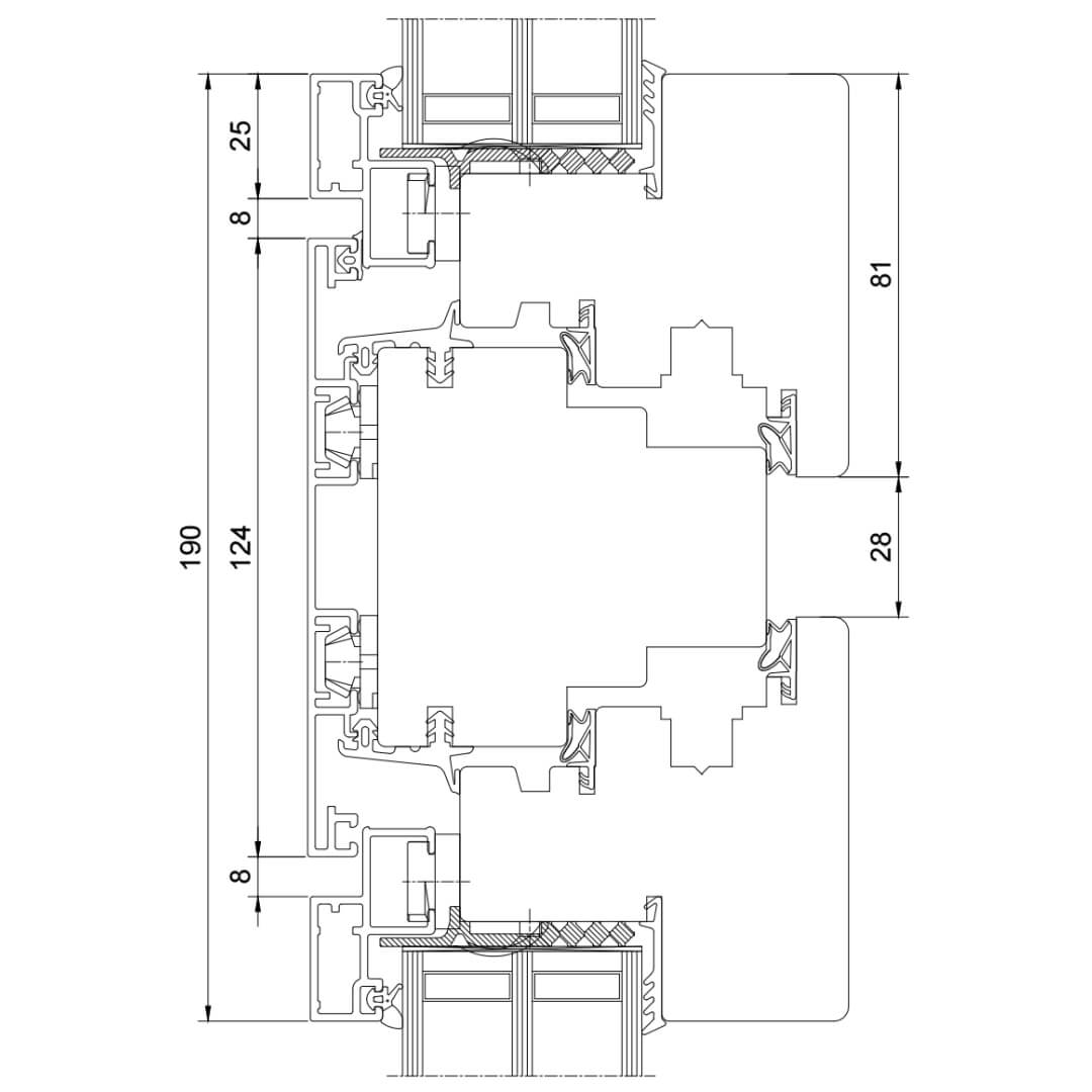 Holz-Aluminium Drutex Duoline 78 mehrflügelig mit vertikalem Pfosten oder Stulp