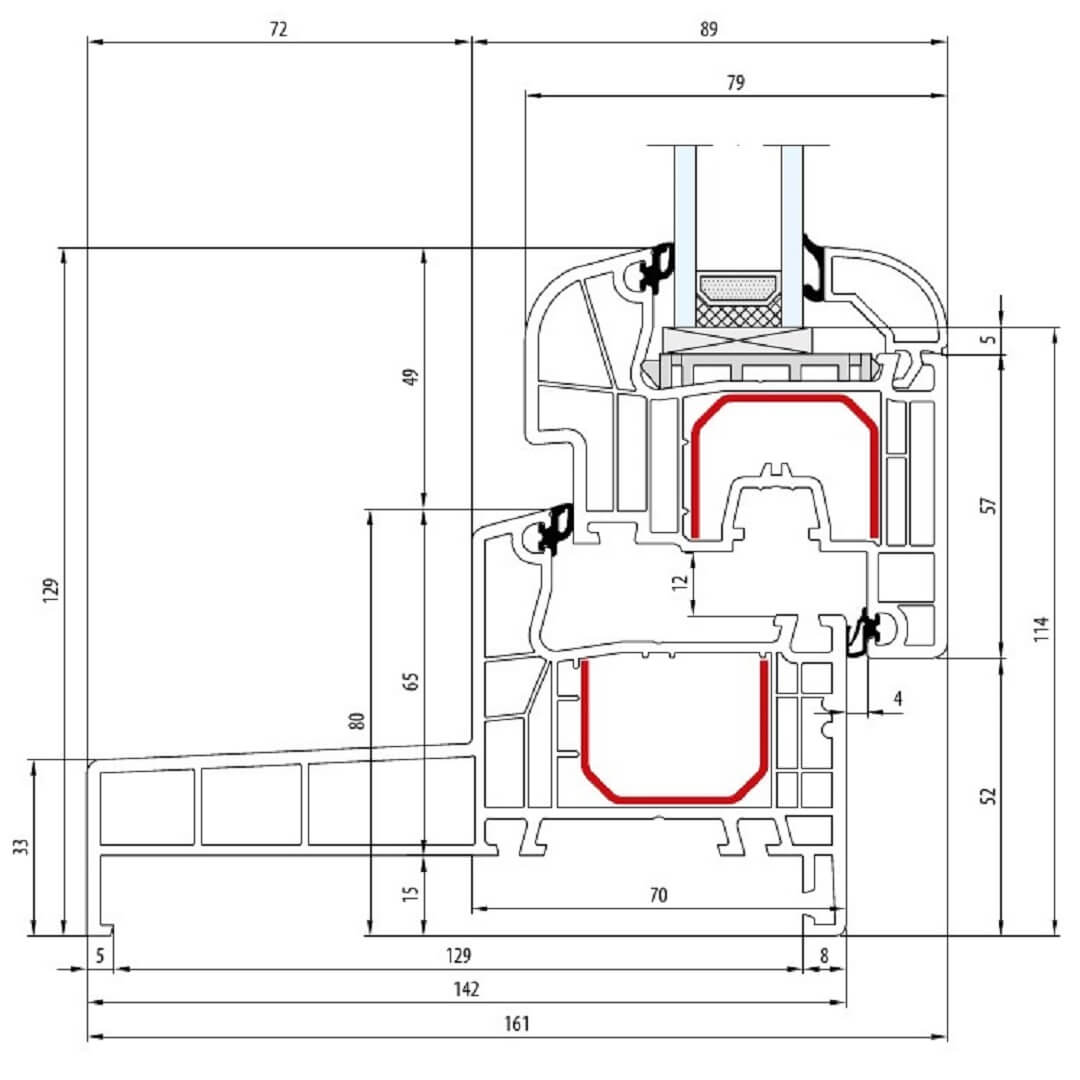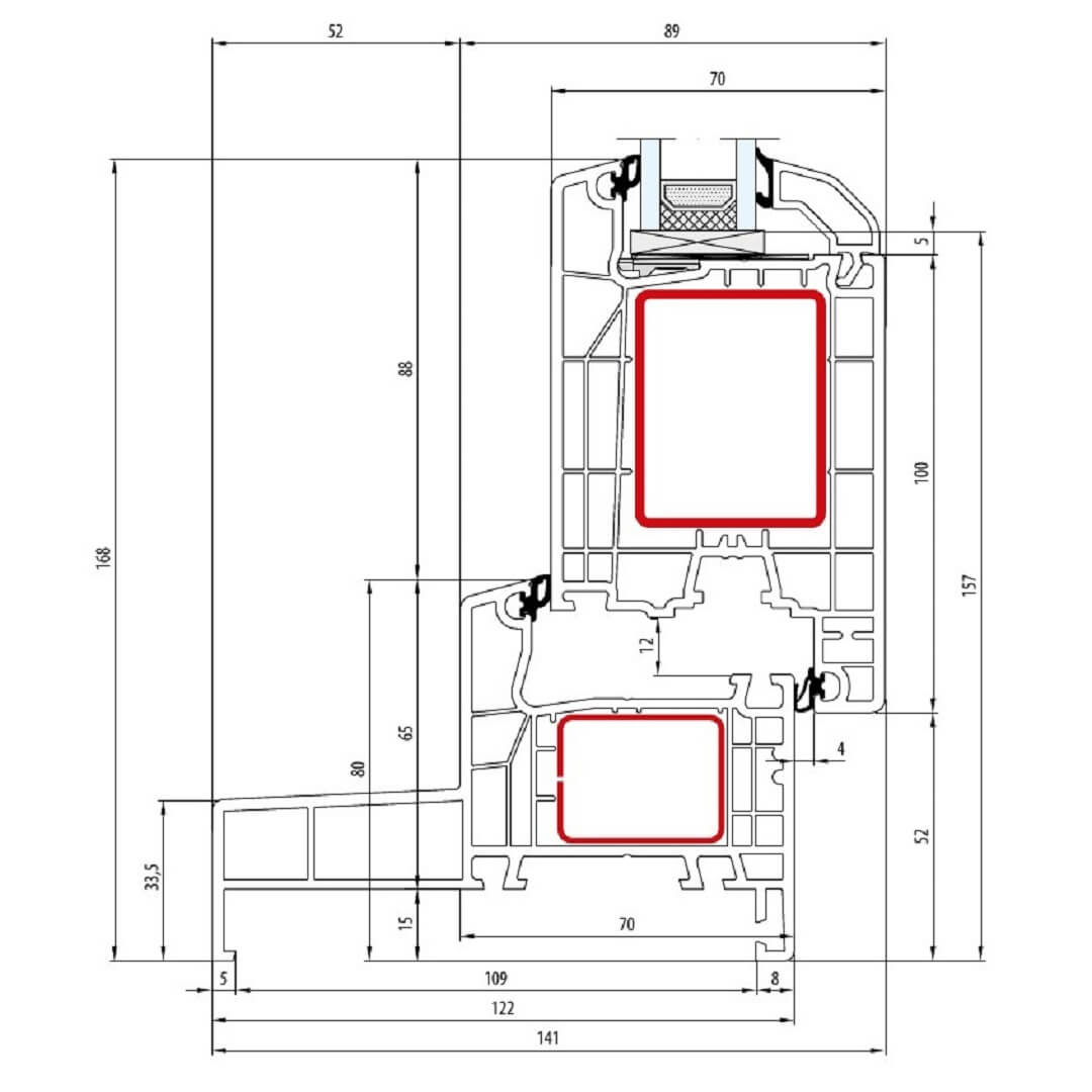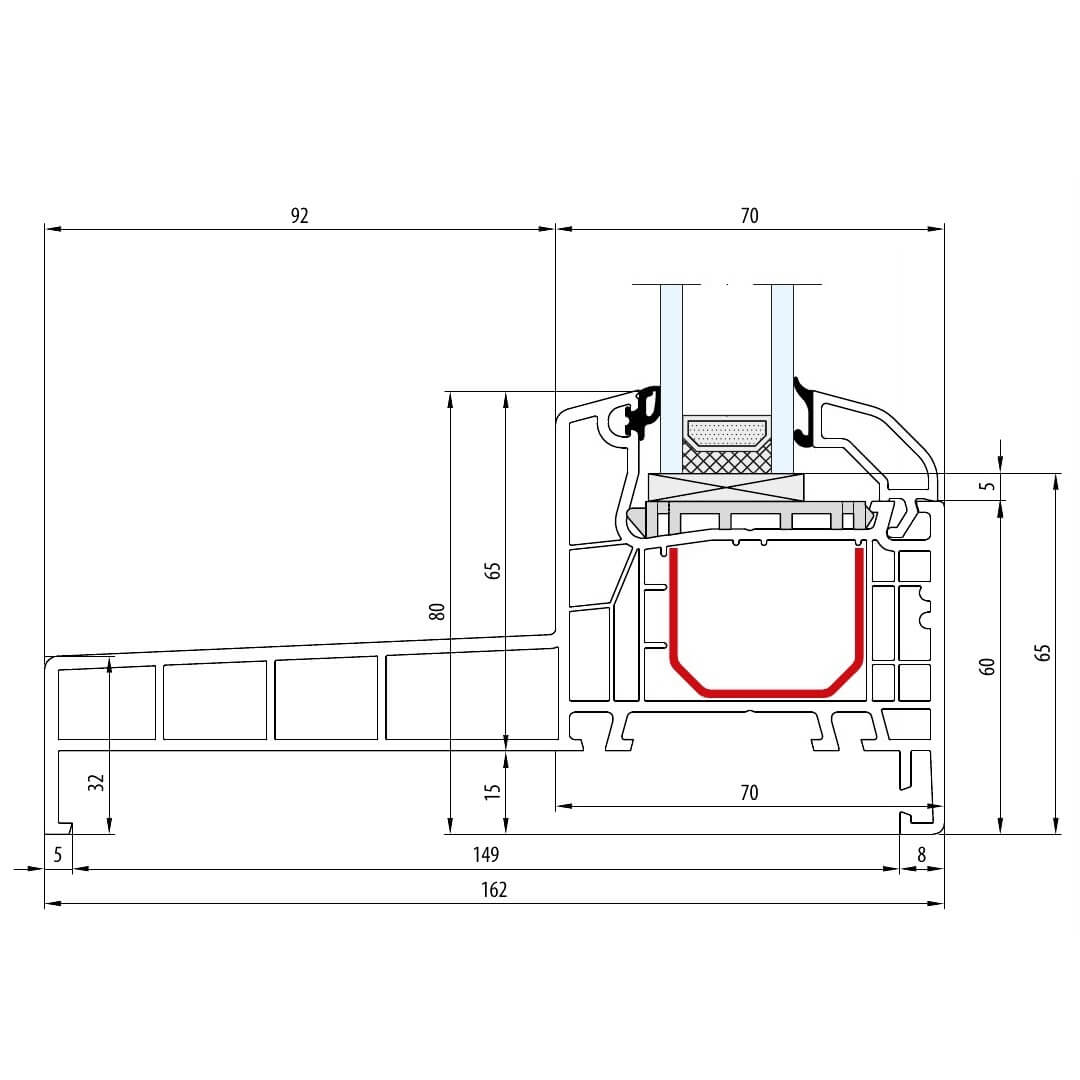 IDEAL 4000 Stulp 64mm Terassentür innen öffnend Classic-Line - 140x66-140x30