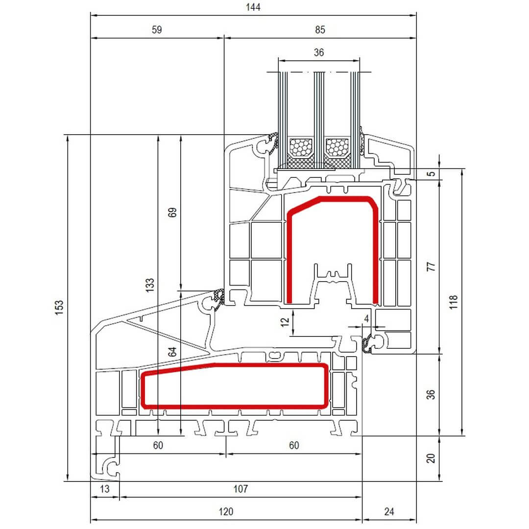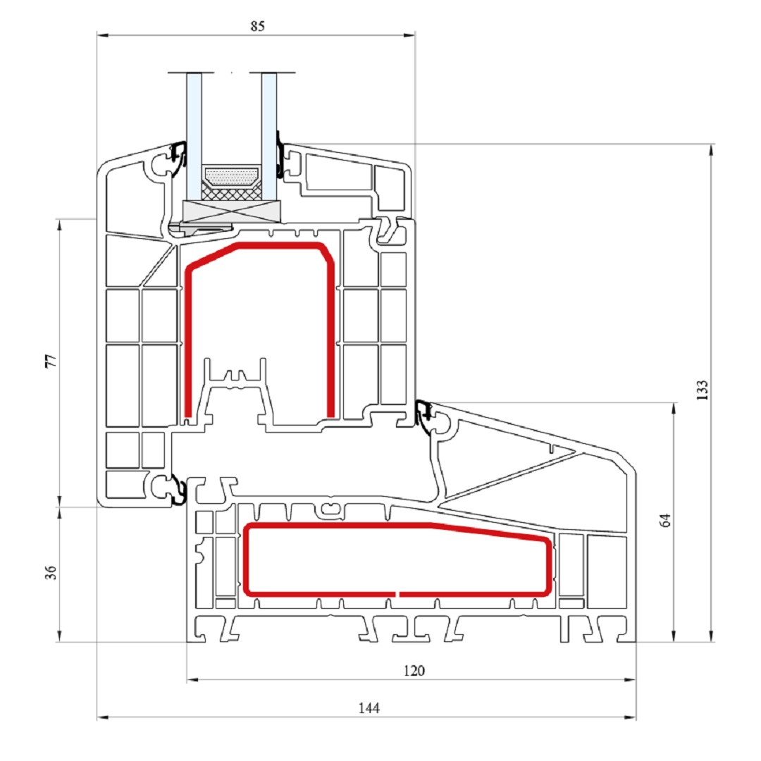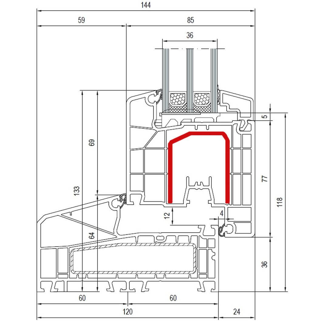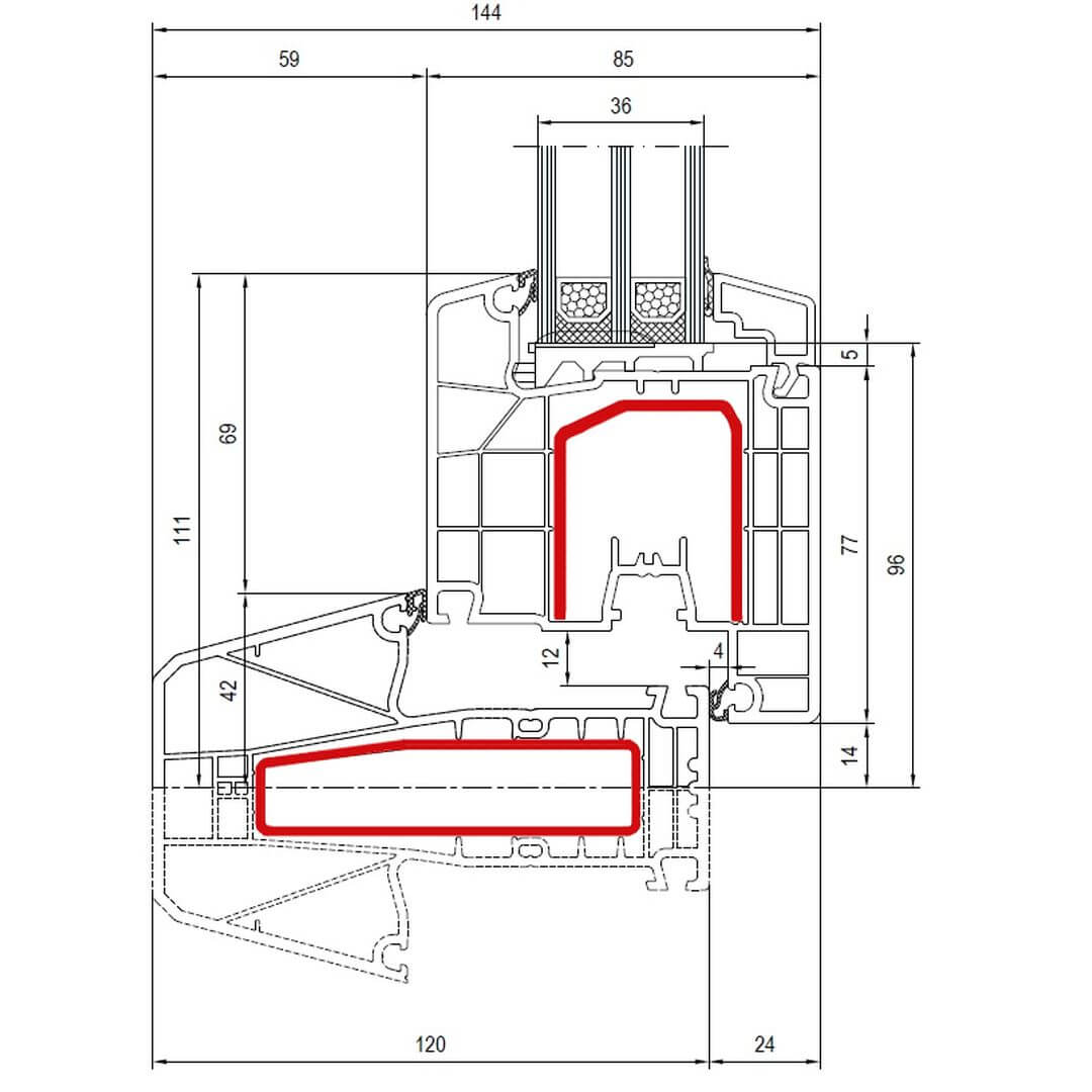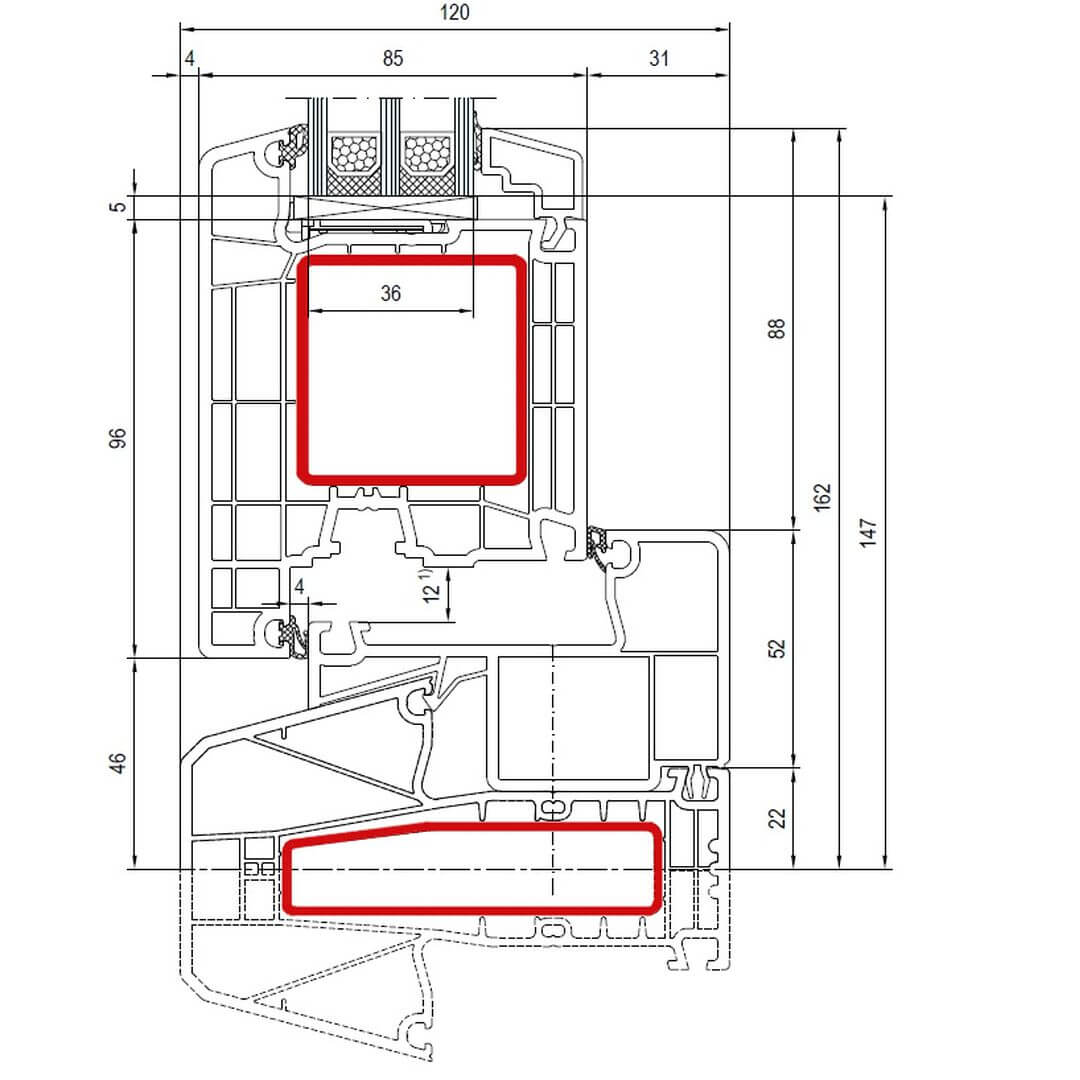 Kunststofffenster IDEAL 4000 85mm besitzen eine Bautiefe (Rahmen) von 85mm.