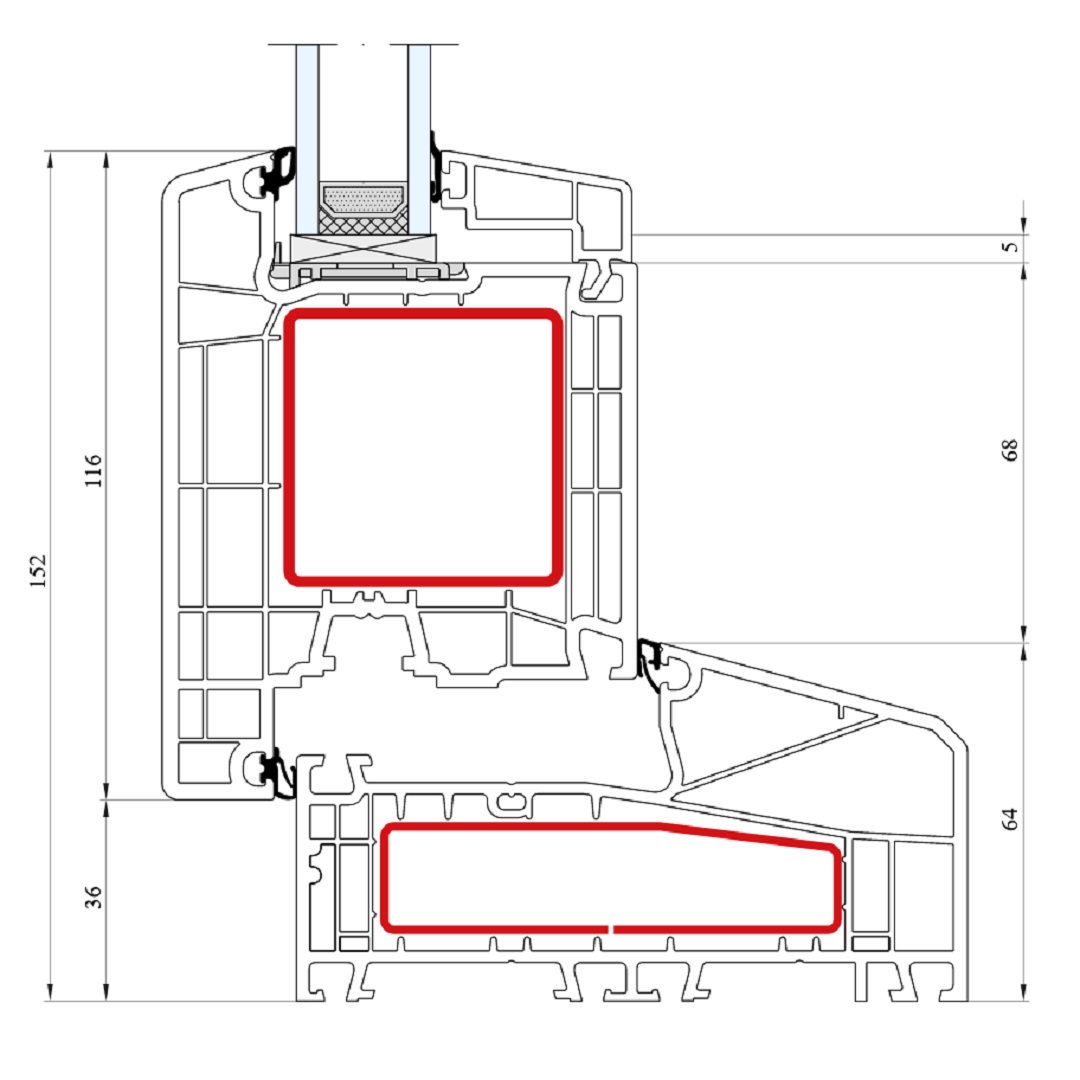 Kunststofffenster IDEAL 7000 NL Blockprofil mit Stulp 64mm