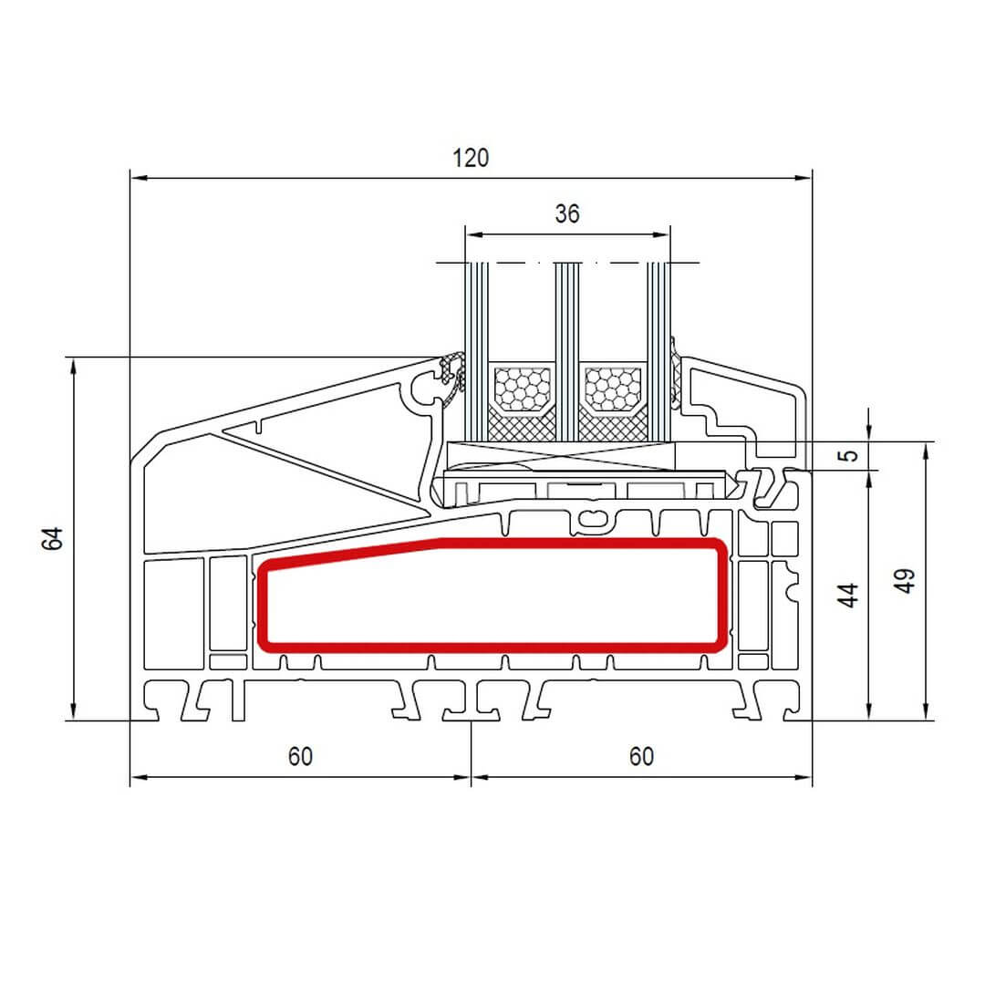 IDEAL 7000 NL Terrassentür innen öffnend Classic-Line 133mm Flosse 20mm - 170x54 - 170x30